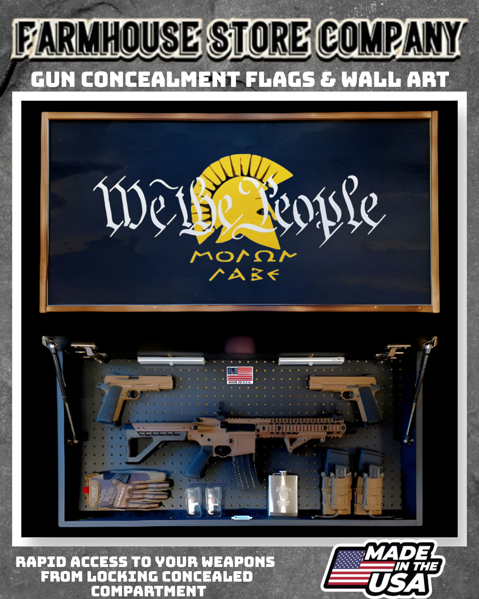 Complete secure concealment of your primary home defense weapons behind an amazing piece of American made Patriotic Decor . This premium Concealment Flag Wall Art keeps your weapons safely out of sight and available within a moment's notice when necessary.