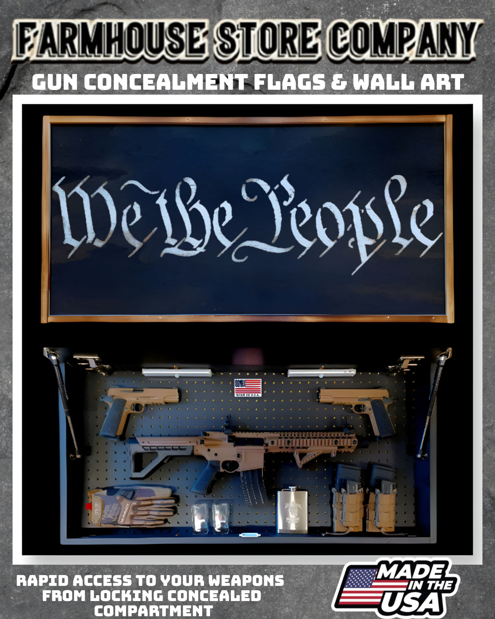Complete secure concealment of your primary home defense weapons behind an amazing piece of American made Patriotic Decor . This premium Concealment Flag Wall Art keeps your weapons safely out of sight and available within a moment's notice when necessary.