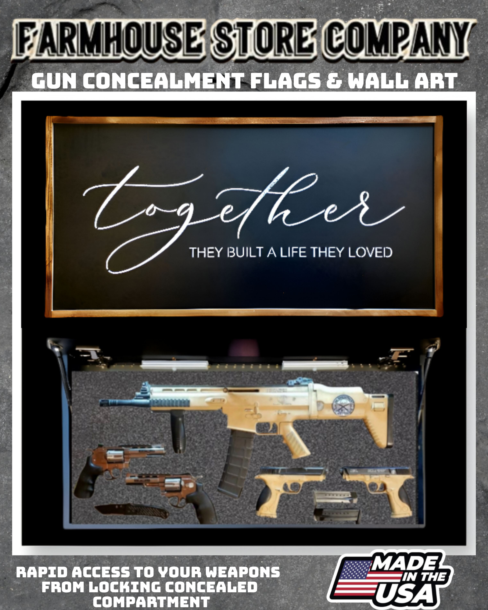 Complete secure concealment of your primary home defense weapons behind an amazing piece of American made Patriotic Decor . This premium Concealment Flag Wall Art keeps your weapons safely out of sight and available within a moment's notice when necessary.