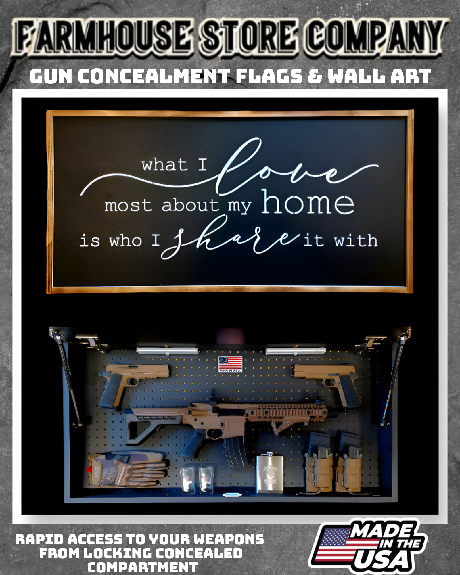 Complete secure concealment of your primary home defense weapons behind an amazing piece of American made Patriotic Decor . This premium Concealment Flag Wall Art keeps your weapons safely out of sight and available within a moment's notice when necessary.