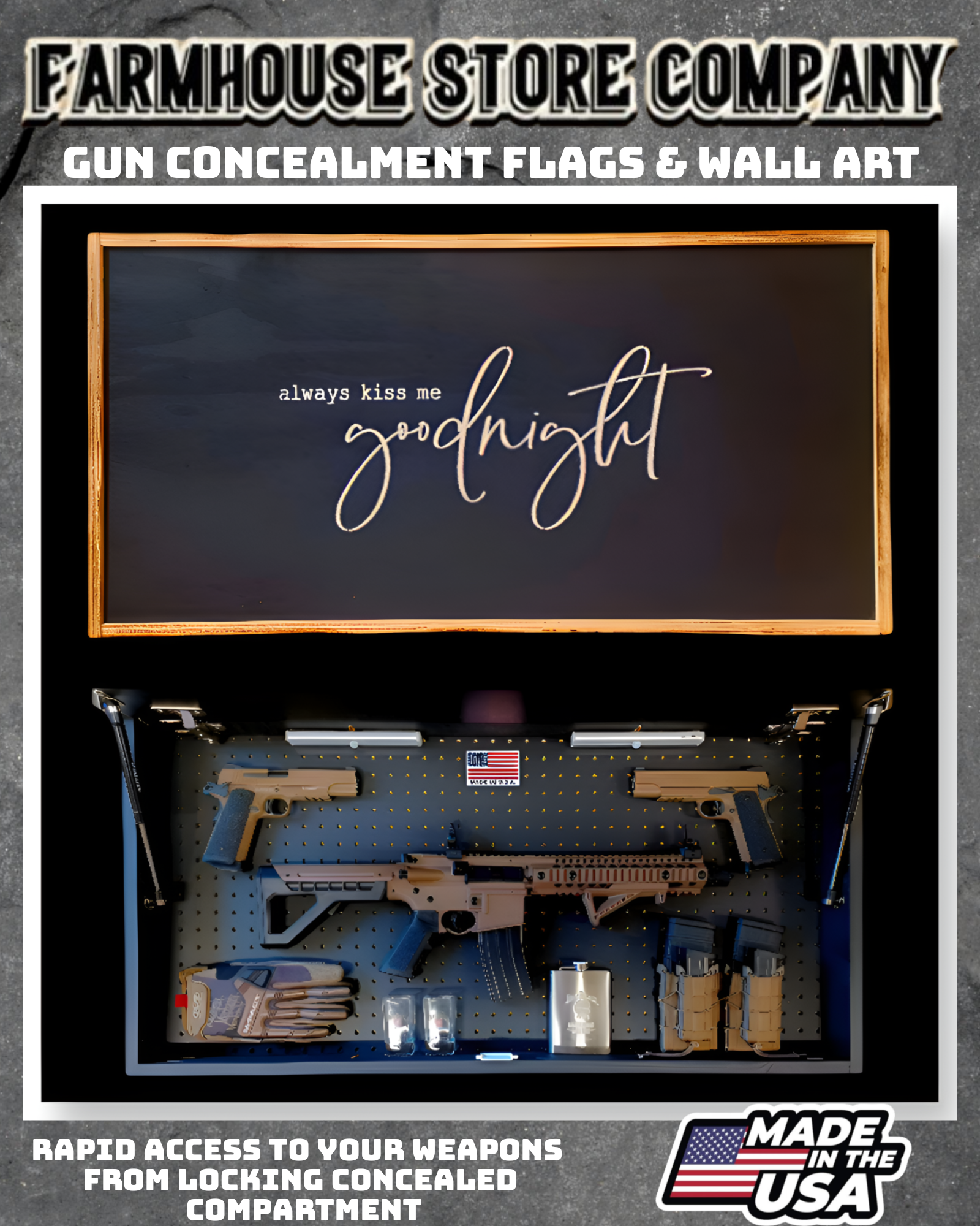 Complete secure concealment of your primary home defense weapons behind an amazing piece of American made Patriotic Decor . This premium Concealment Flag Wall Art keeps your weapons safely out of sight and available within a moment's notice when necessary.