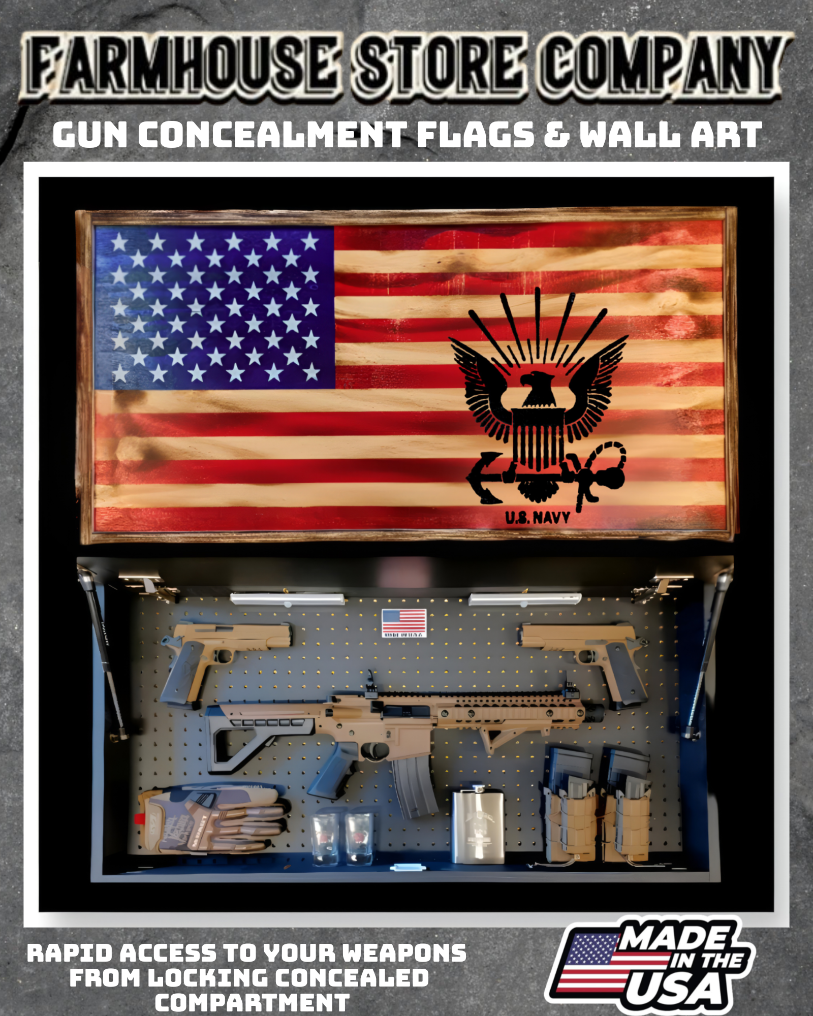 Gun Concealment Flag Deluxe Wall Art Charred US Navy Design