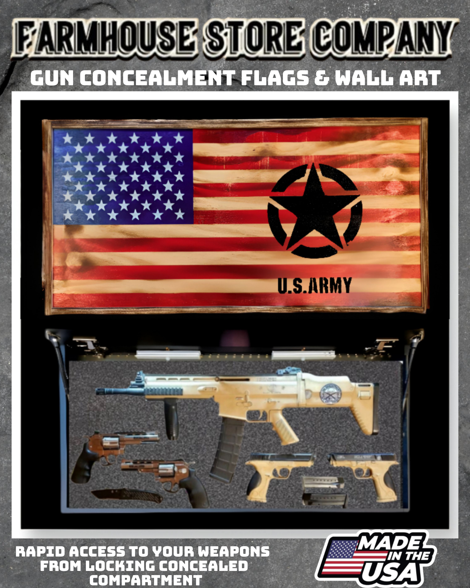 Gun Concealment Flag Deluxe Wall Art Charred US Army Design