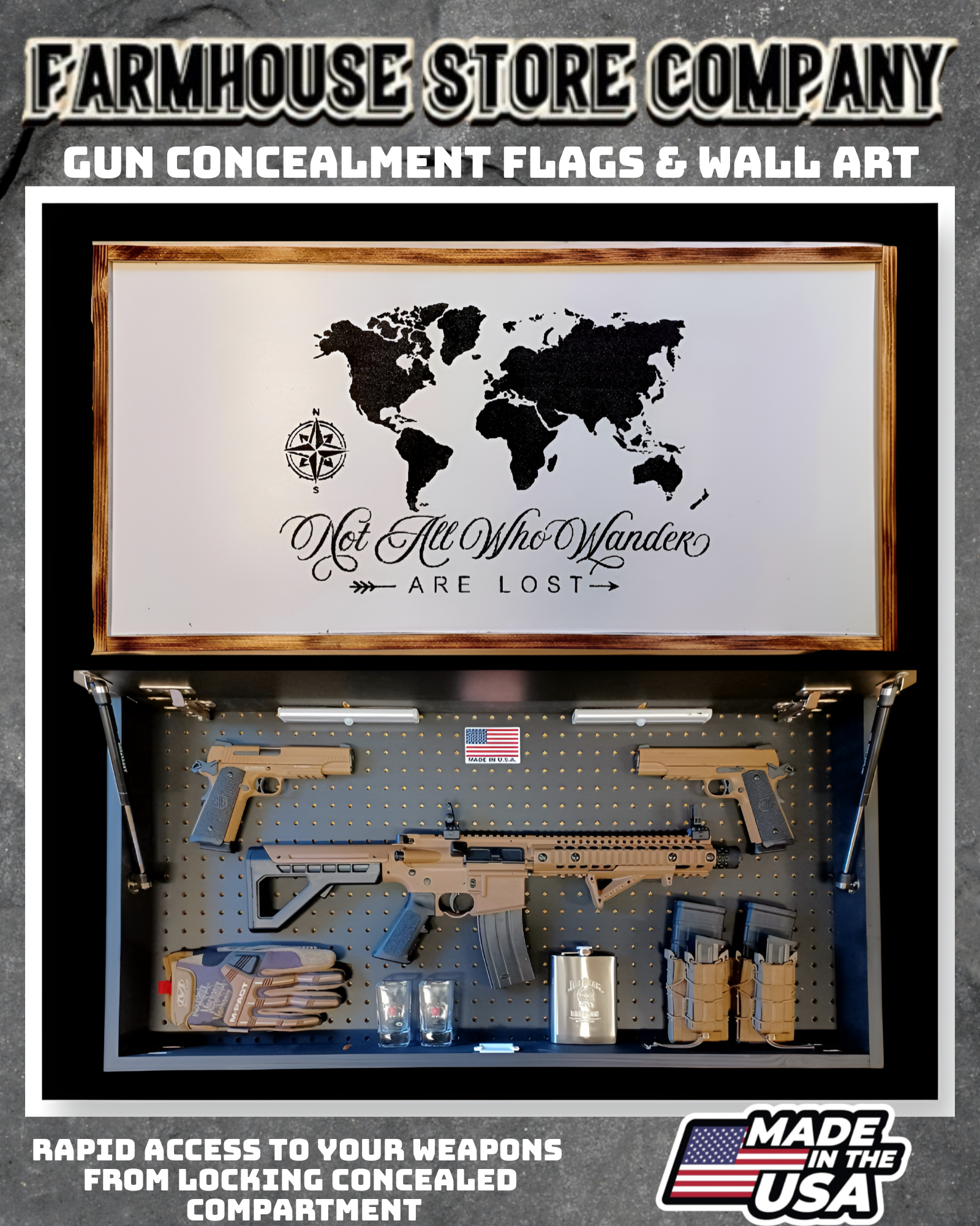 Complete secure concealment of your primary home defense weapons behind an amazing piece of American made Patriotic Decor . This premium Concealment Flag Wall Art keeps your weapons safely out of sight and available within a moment's notice when necessary.