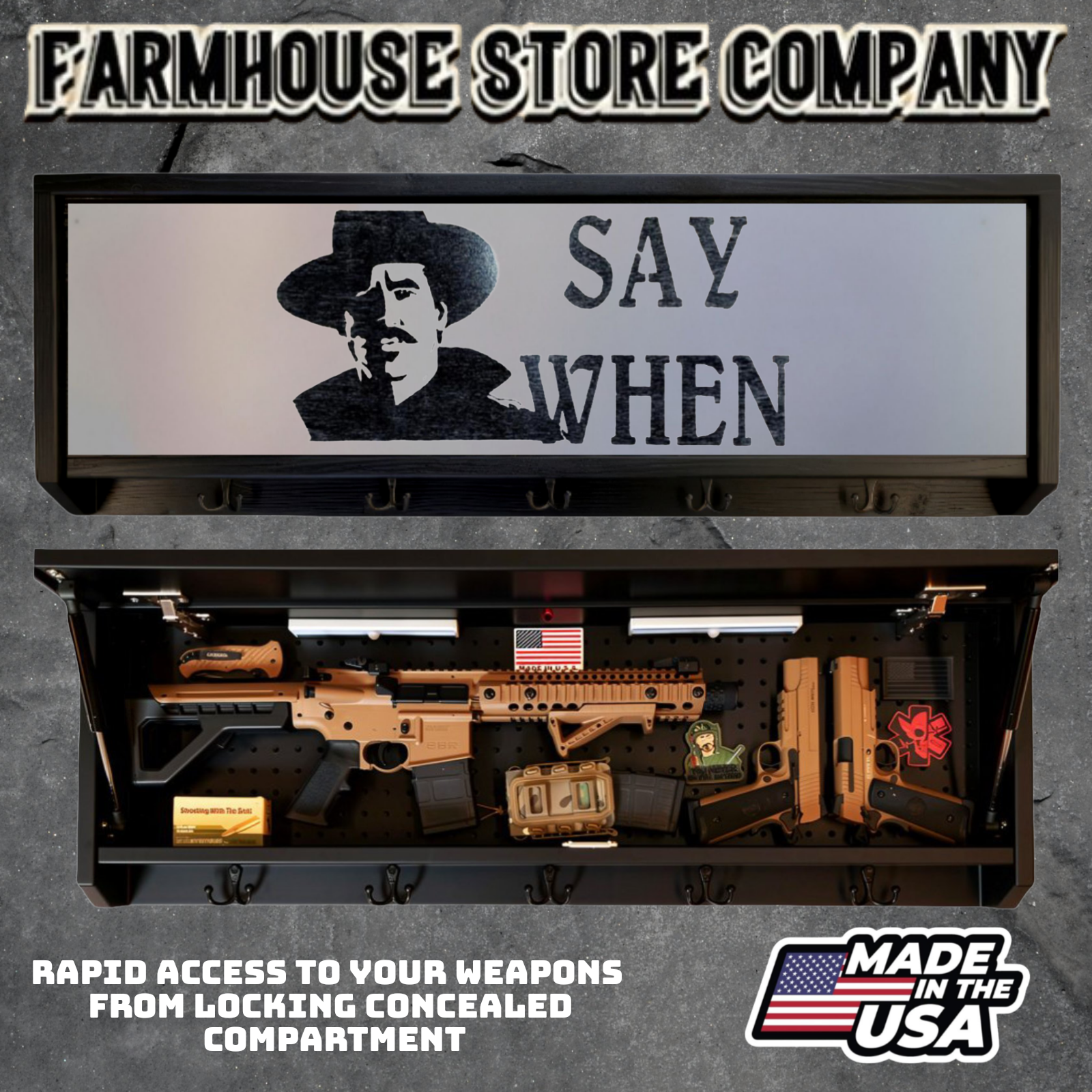Complete secure concealment of your primary home defense weapons behind an amazing piece of American made Patriotic Decor . This premium Concealment Coat Rack keeps your weapons safely out of sight and available within a moment's notice when necessary, while also holding coats, hats, & all of your gear.