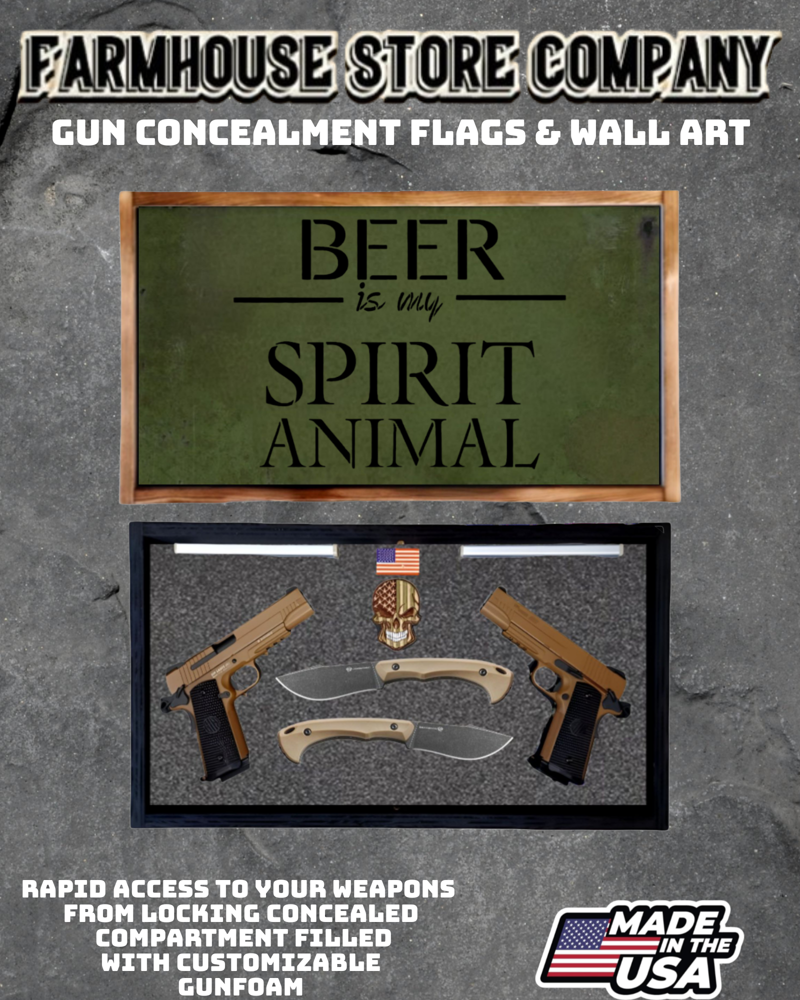 Gun Concealment Flag Deluxe Handgun Wall Art BATTLE-WORN OD GREEN Spirit Animal 2A Design