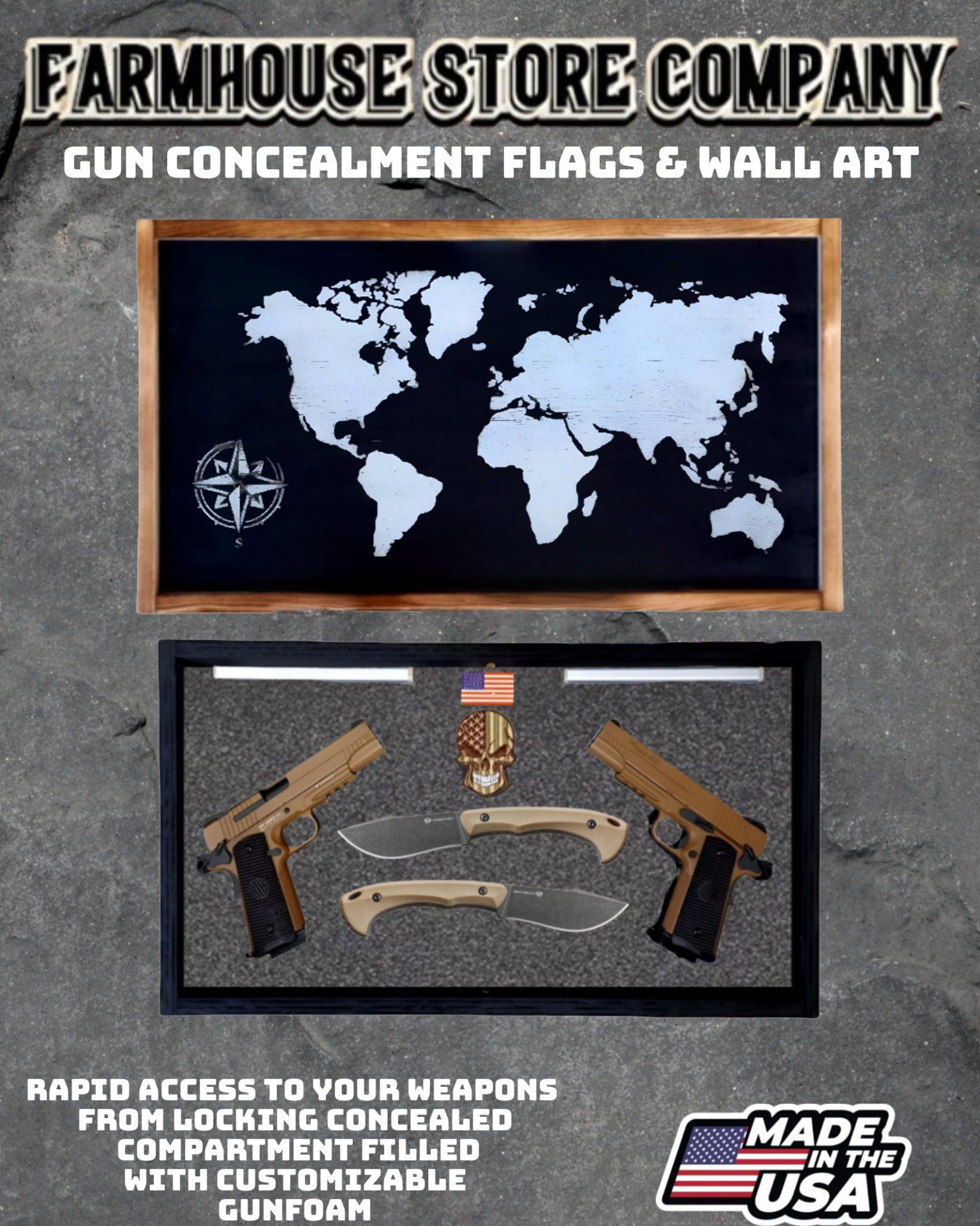 Gun Concealment Flag Deluxe Handgun Wall Art Charred Black World Map Design