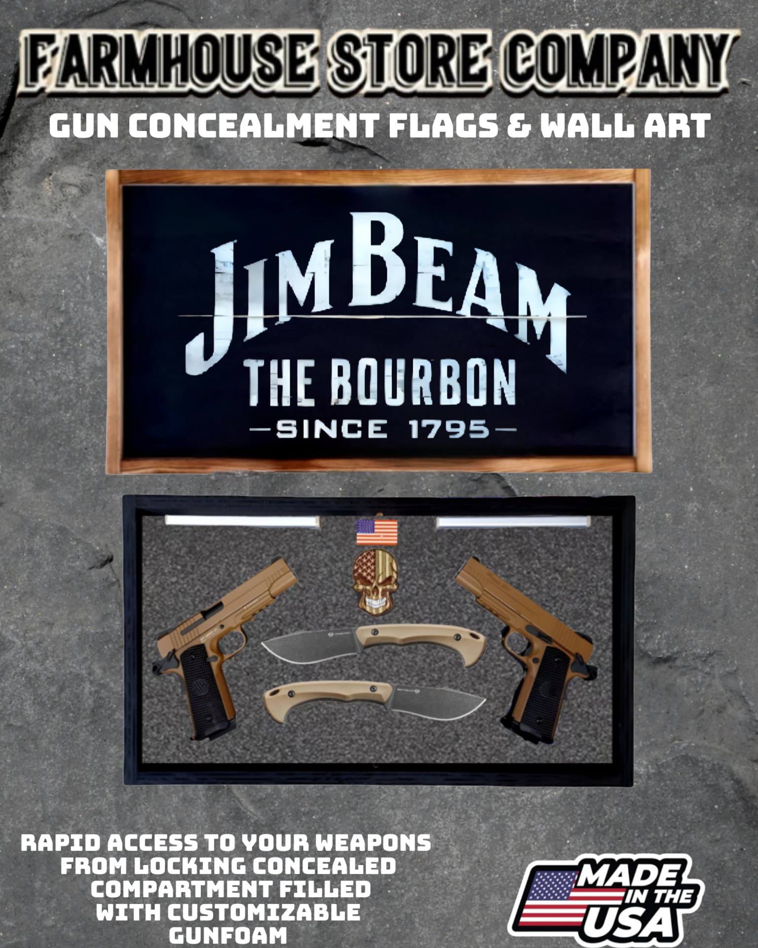 Gun Concealment Flag Deluxe Handgun Wall Art Charred Black Jim Beam Design