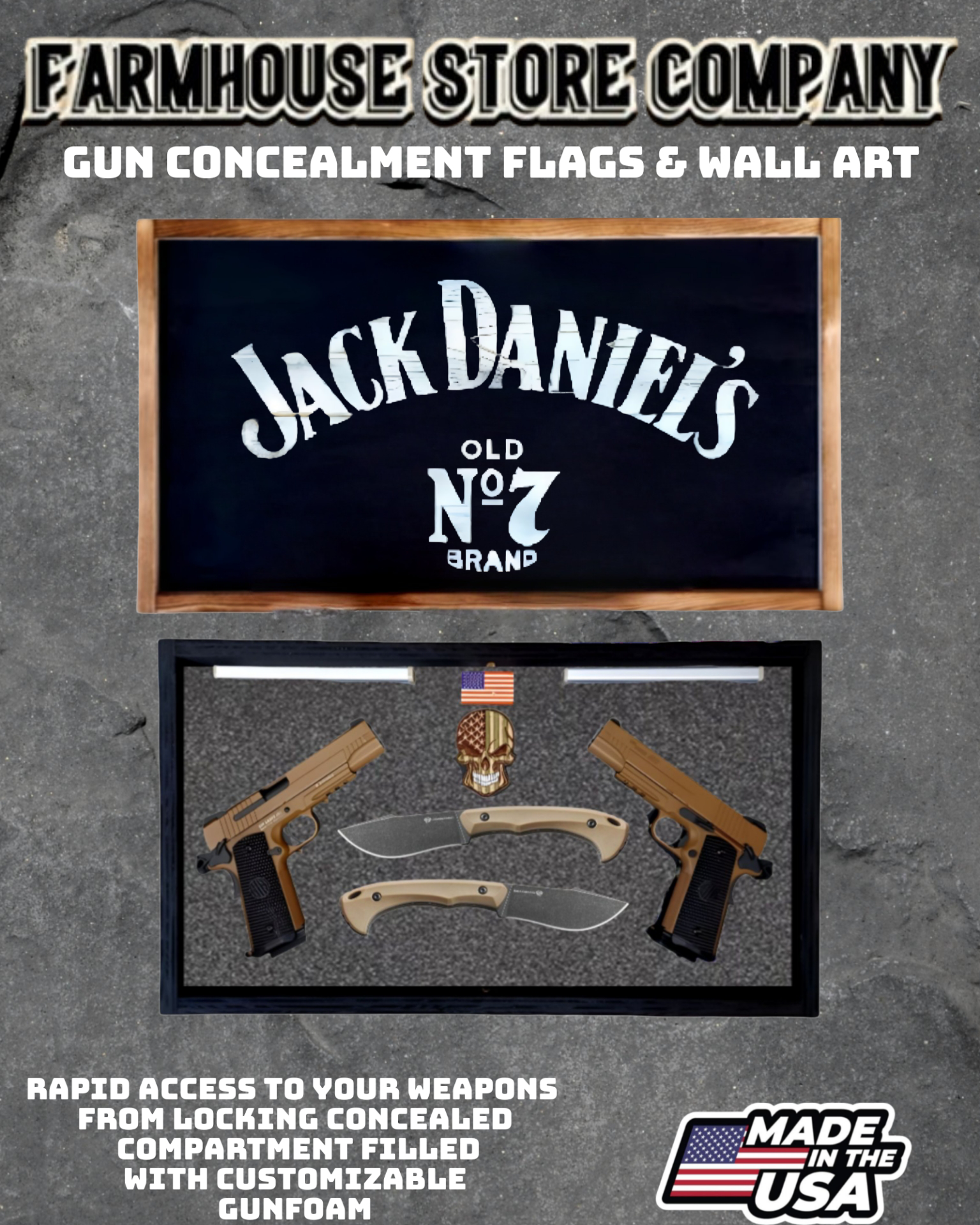 Gun Concealment Flag Deluxe Handgun Wall Art Charred Black Jack Daniel's Design