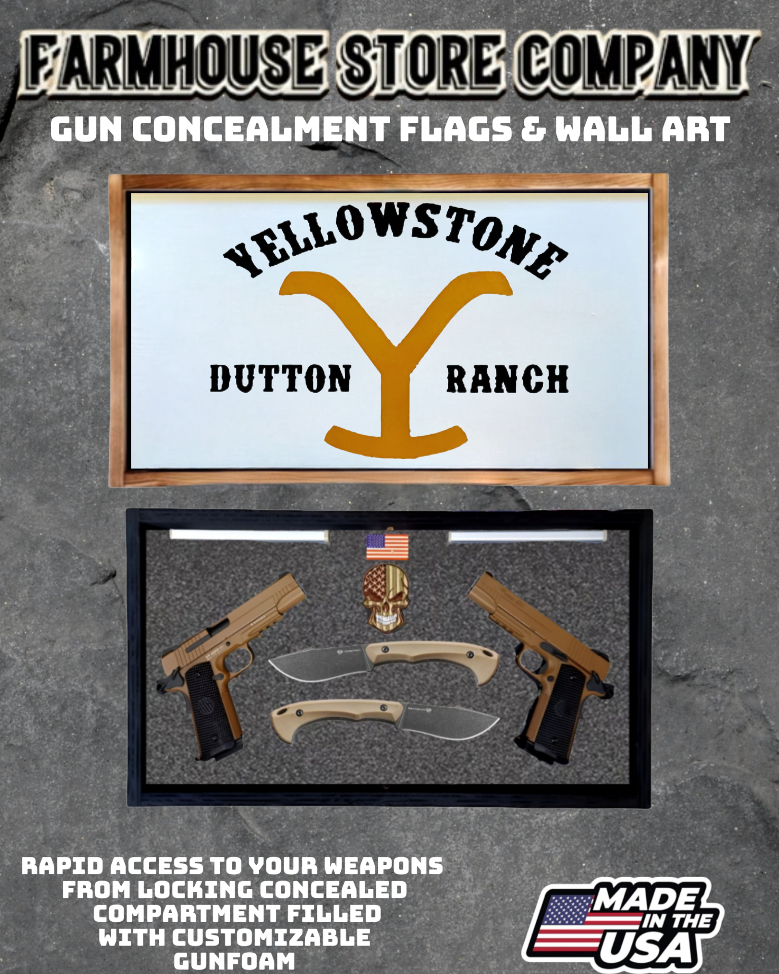 Gun Concealment Flag Deluxe Handgun Wall Art Charred White Yellowstone Design