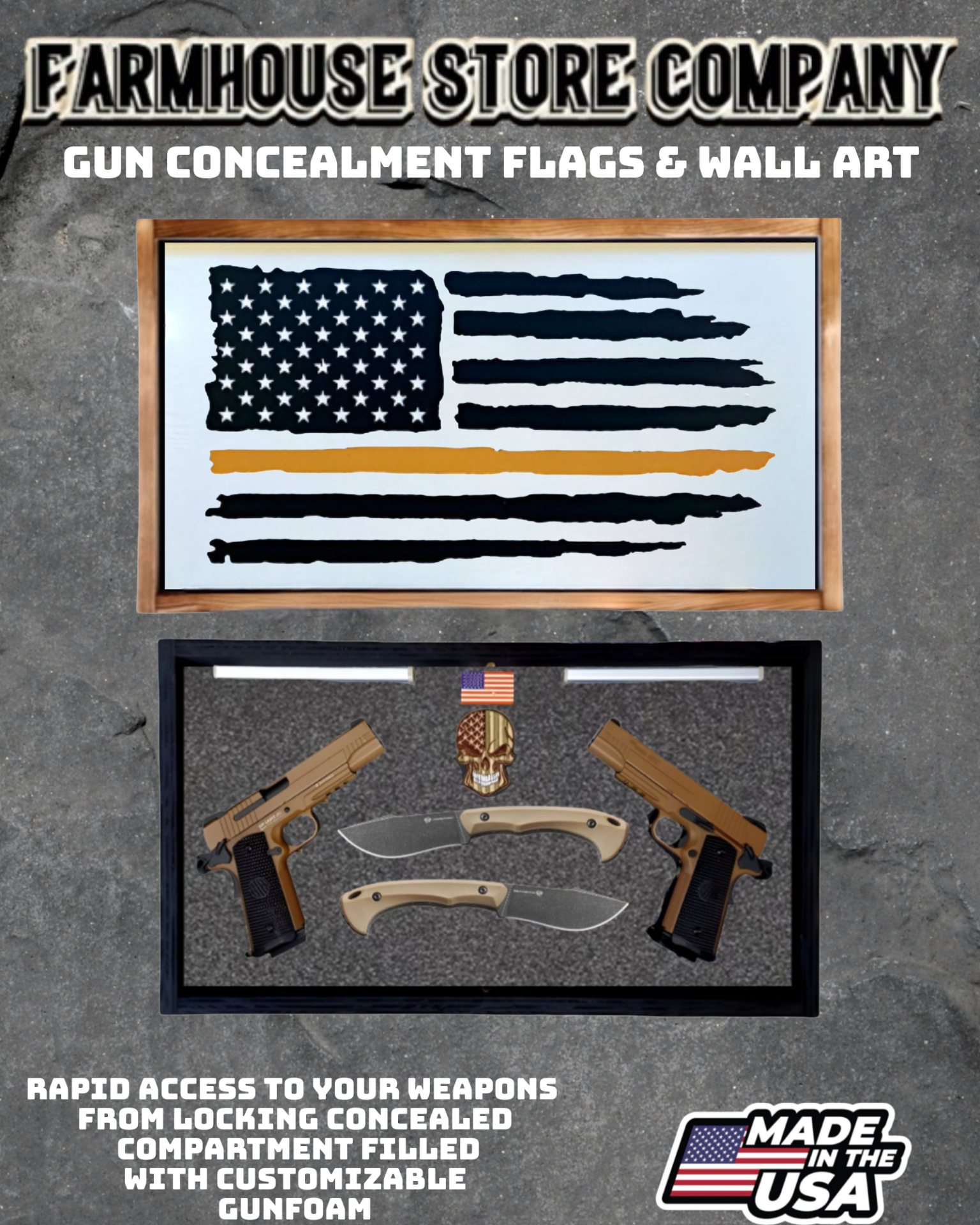 Complete secure concealment of your primary home defense weapons behind an amazing piece of American made Patriotic Decor . This premium Concealment Flag Wall Art keeps your weapons safely out of sight and available within a moment's notice when necessary.