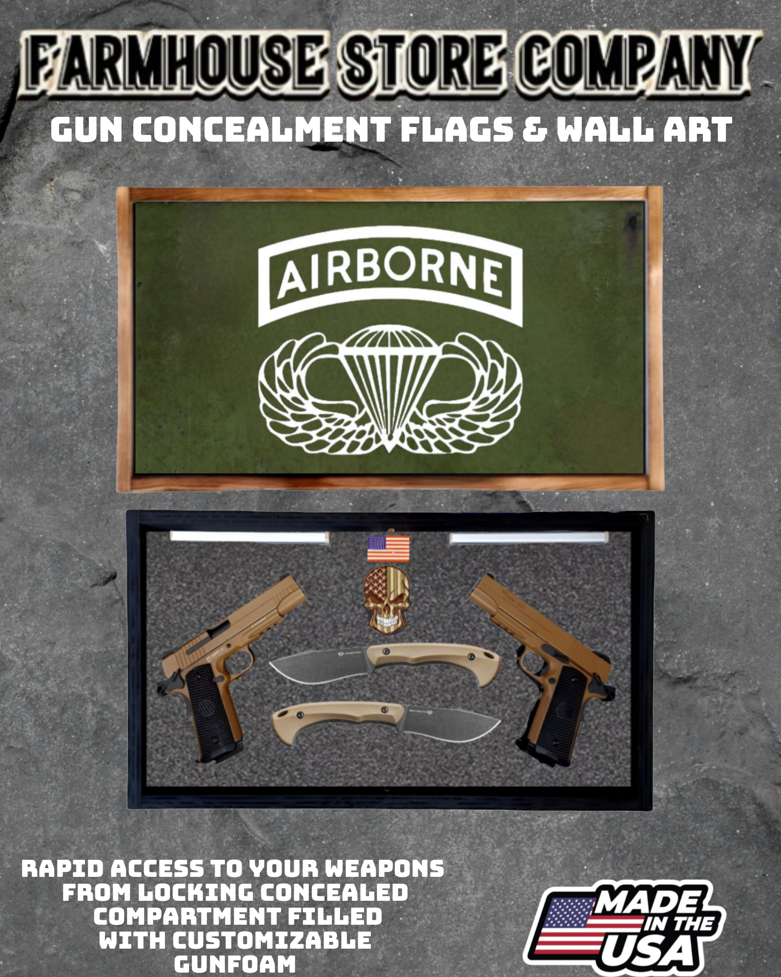 • Load image into Gallery viewer, Gun Concealment Flag Deluxe Handgun Wall Art BATTLE-WORN OD GREEN Airborne Design