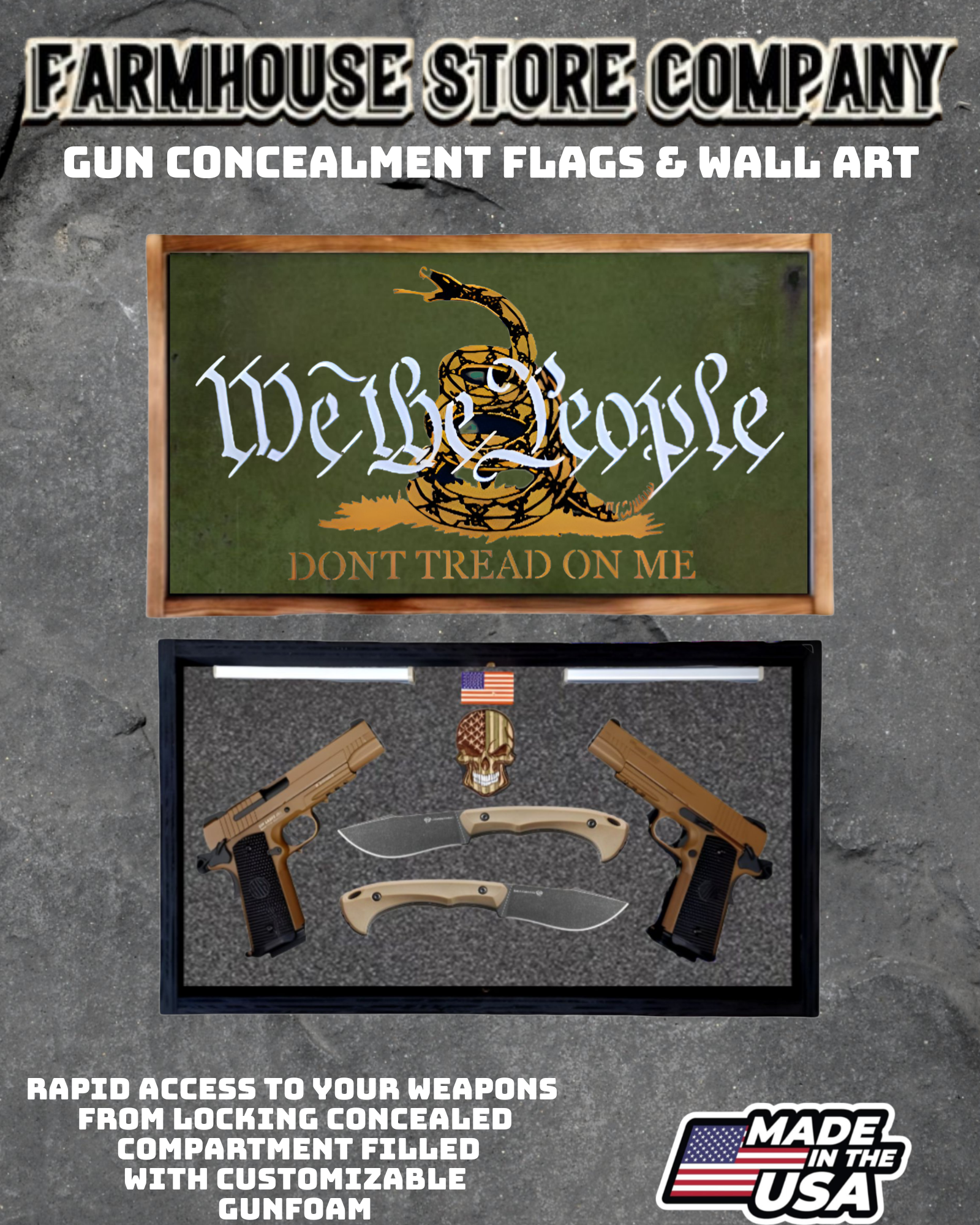 Complete secure concealment of your primary home defense weapons behind an amazing piece of American made Patriotic Decor . This premium Concealment Flag Wall Art keeps your weapons safely out of sight and available within a moment's notice when necessary.