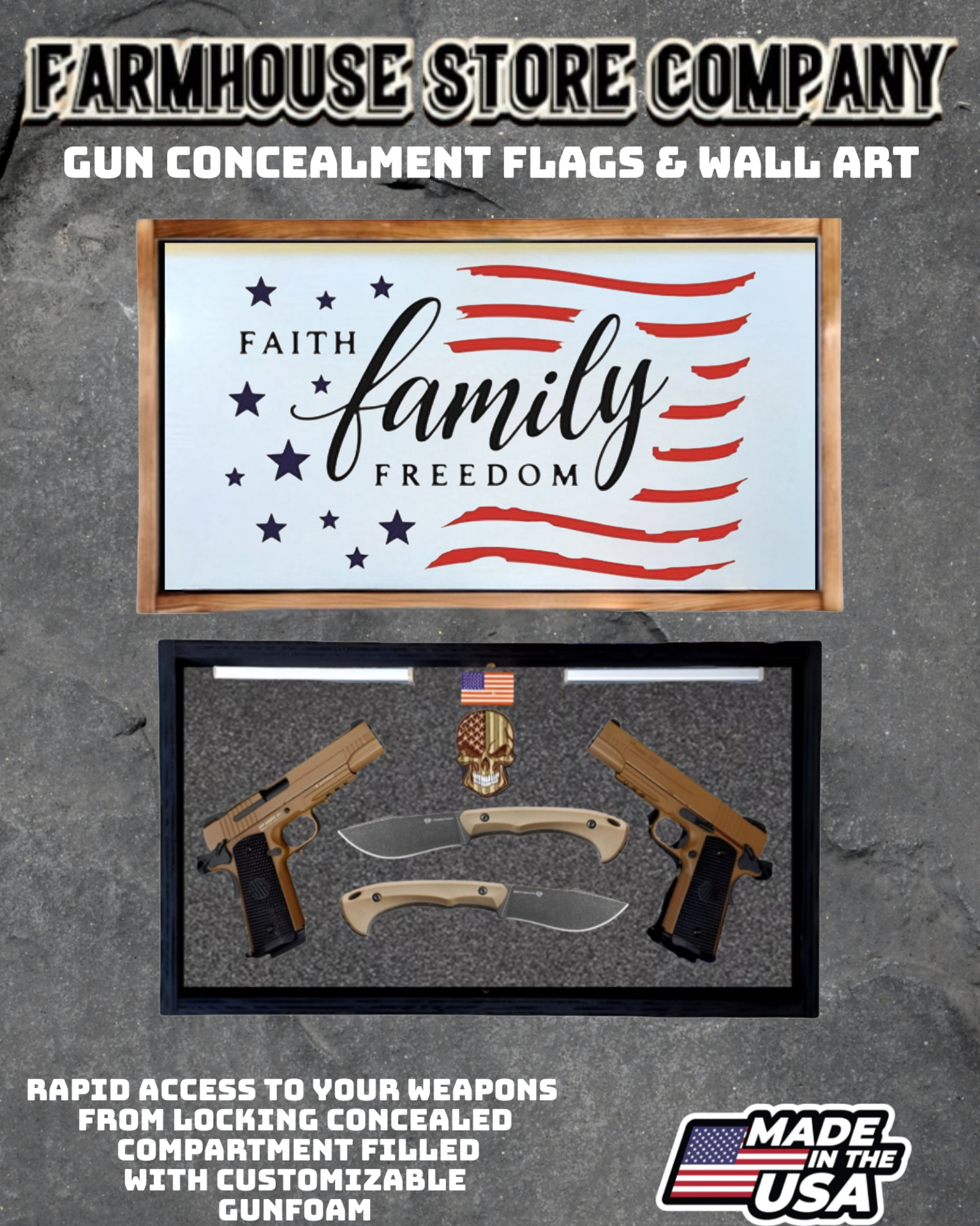 Gun Concealment Flag Deluxe Handgun Wall Art White Faith Family Freedom Design