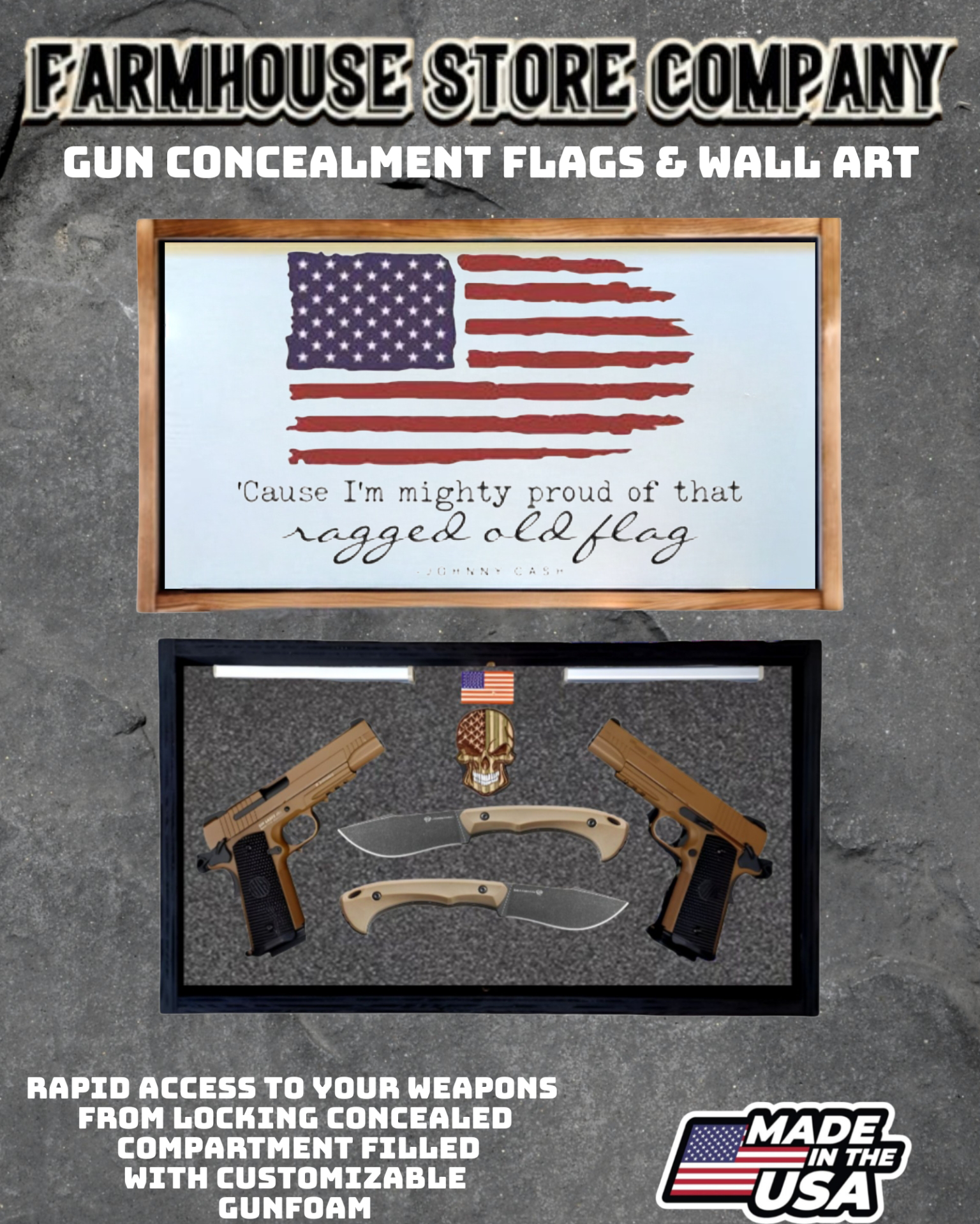 Complete secure concealment of your primary home defense weapons behind an amazing piece of American made Patriotic Decor . This premium Concealment Flag Wall Art keeps your weapons safely out of sight and available within a moment's notice when necessary.