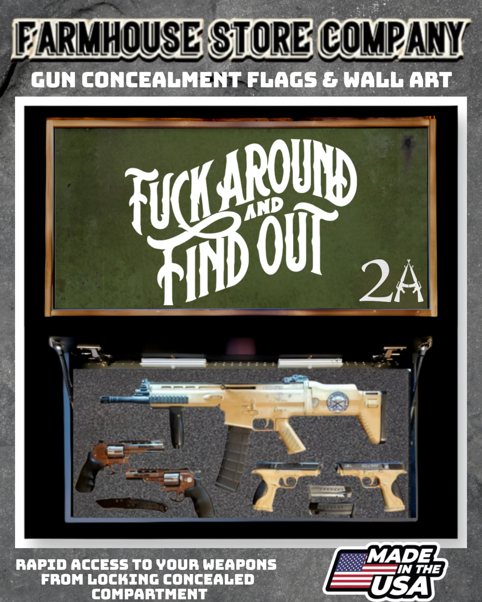 Gun Concealment Flag Deluxe Wall Art BATTLE-WORN OD GREEN FAFO 2A Design