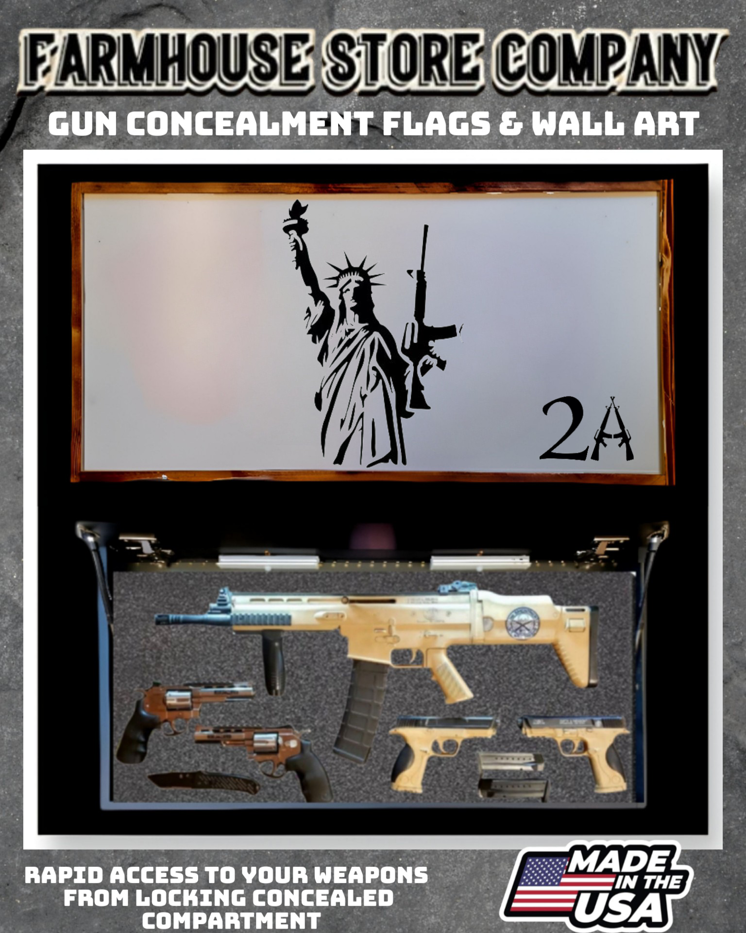Complete secure concealment of your primary home defense weapons behind an amazing piece of American made Patriotic Decor . This premium Concealment Flag Wall Art keeps your weapons safely out of sight and available within a moment's notice when necessary.