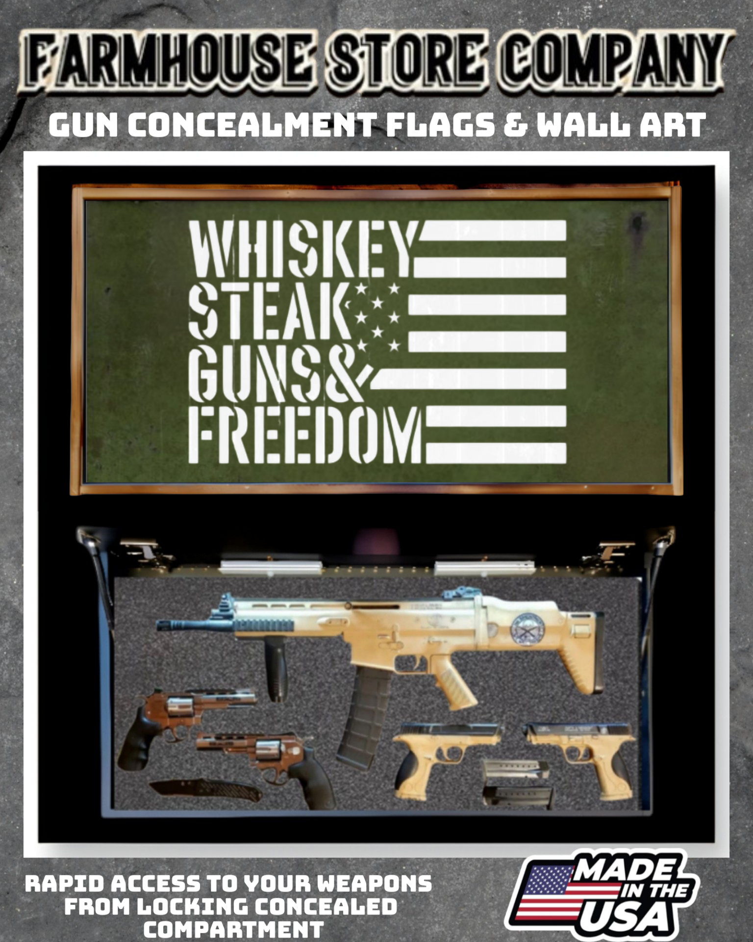 Complete secure concealment of your primary home defense weapons behind an amazing piece of American made Patriotic Decor . This premium Concealment Flag Wall Art keeps your weapons safely out of sight and available within a moment's notice when necessary.