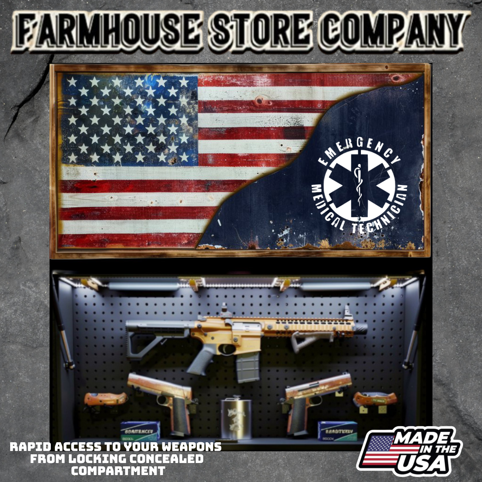 Complete secure concealment of your primary home defense weapons behind an amazing piece of American made Patriotic Decor . This premium Concealment Flag Wall Art keeps your weapons safely out of sight and available within a moment's notice when necessary.