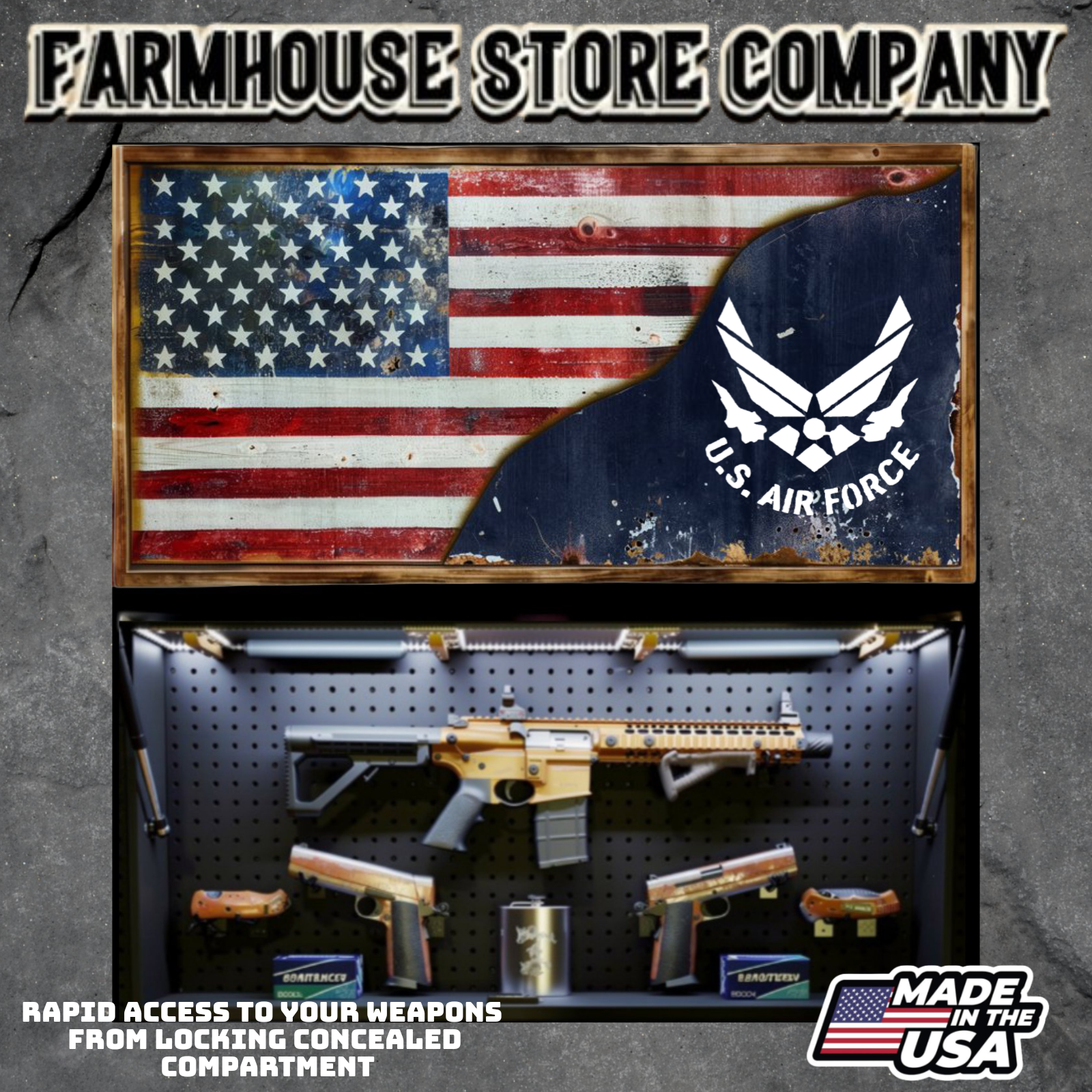 Complete secure concealment of your primary home defense weapons behind an amazing piece of American made Patriotic Decor . This premium Concealment Flag Wall Art keeps your weapons safely out of sight and available within a moment's notice when necessary.