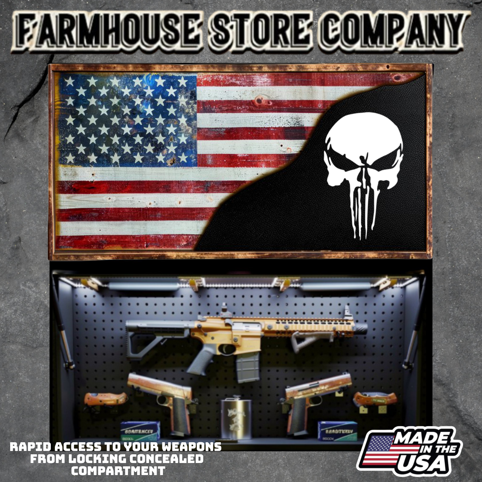 Complete secure concealment of your primary home defense weapons behind an amazing piece of American made Patriotic Decor . This premium Concealment Flag Wall Art keeps your weapons safely out of sight and available within a moment's notice when necessary.