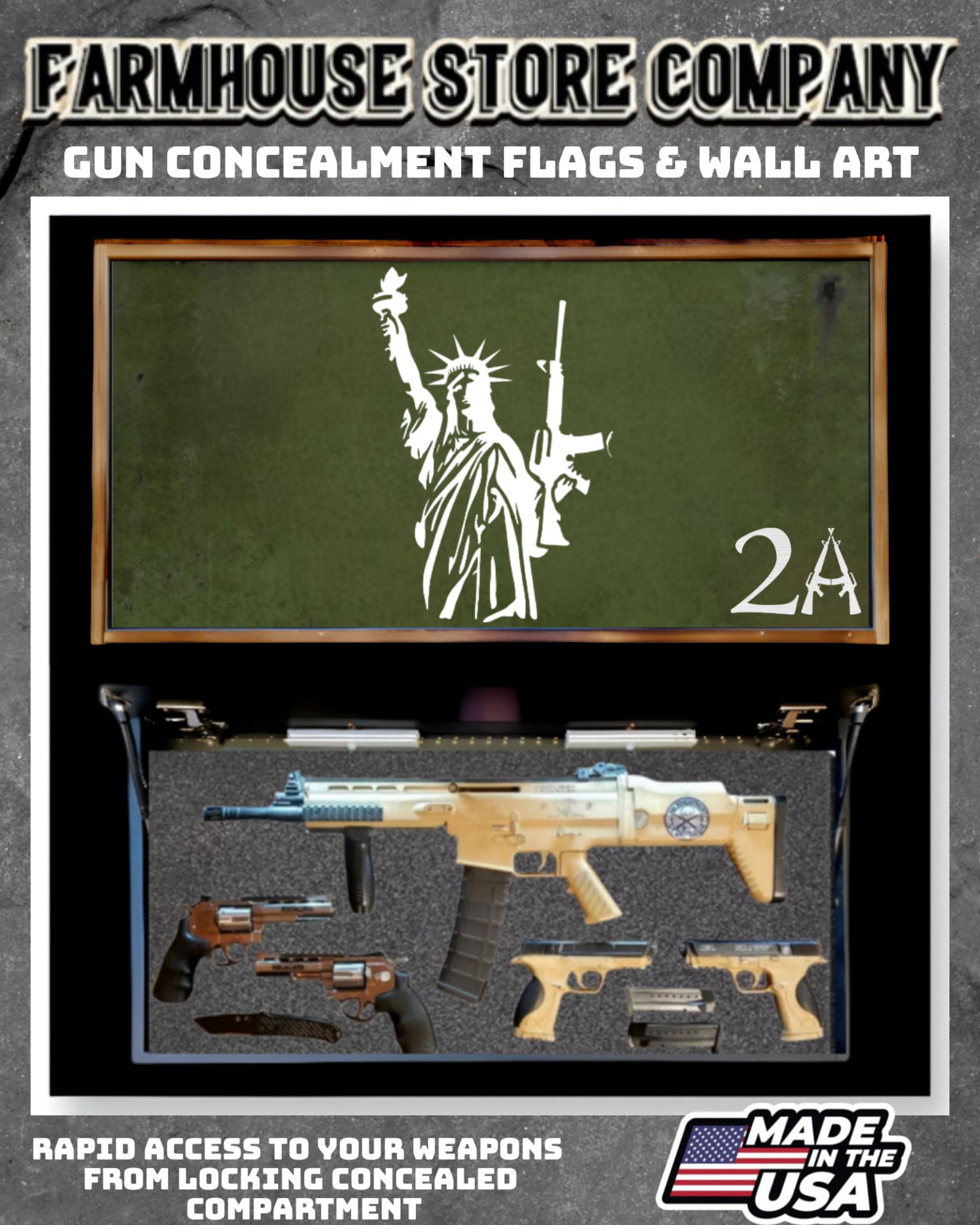 Complete secure concealment of your primary home defense weapons behind an amazing piece of American made Patriotic Decor . This premium Concealment Flag Wall Art keeps your weapons safely out of sight and available within a moment's notice when necessary.