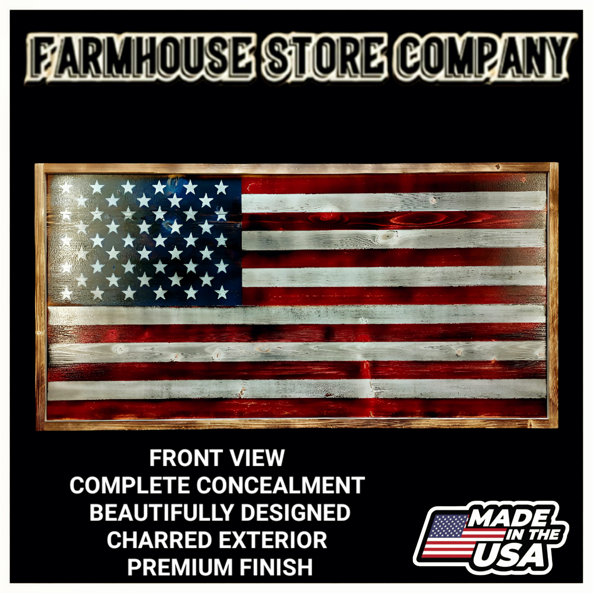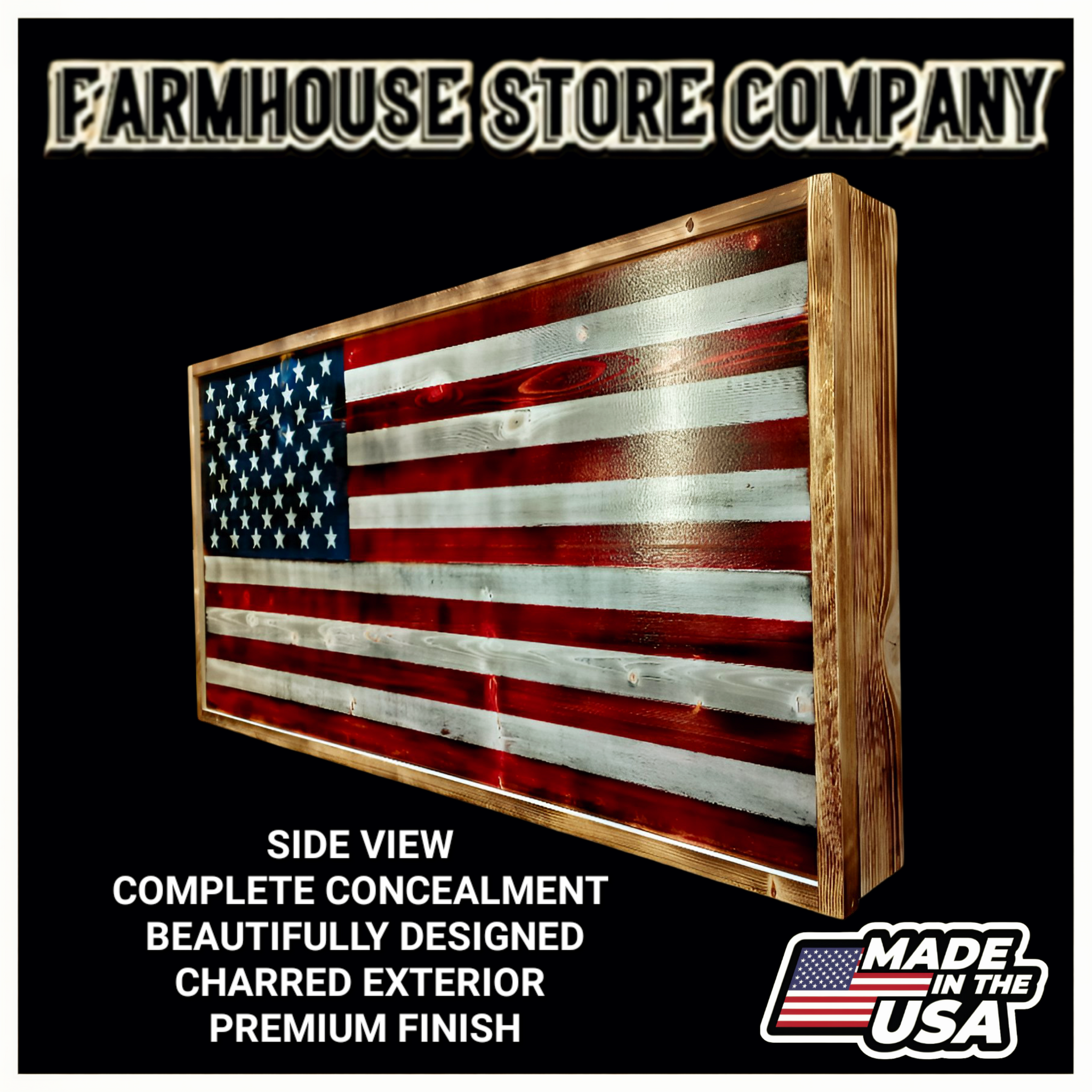Complete secure concealment of your primary home defense weapons behind an amazing piece of American made Patriotic Decor . This premium Concealment Flag Wall Art keeps your weapons safely out of sight and available within a moment's notice when necessary.