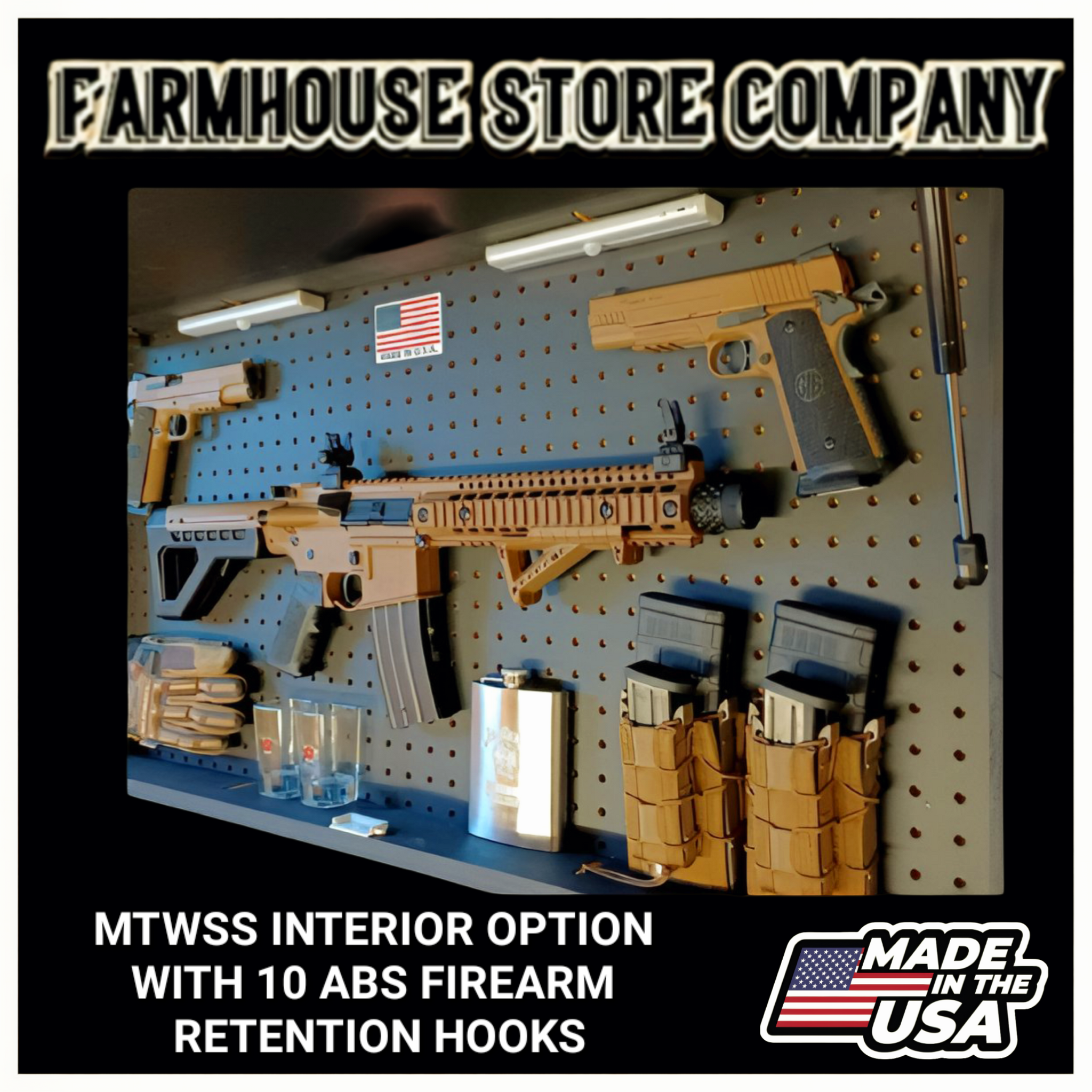 * Choice of MTWSS Interior & interchangeable abs firearm retention hooks or fully customizable high density gun foam Interior.