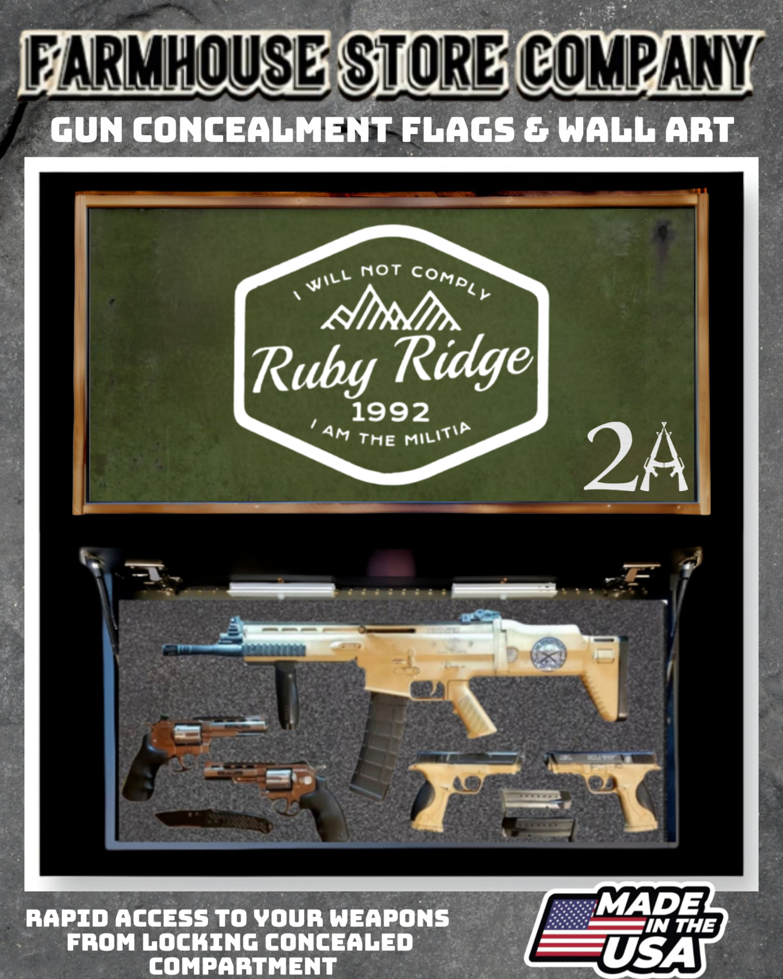 Gun Concealment Flag Deluxe Wall Art BATTLE-WORN OD GREEN 2A Ruby Ridge Design