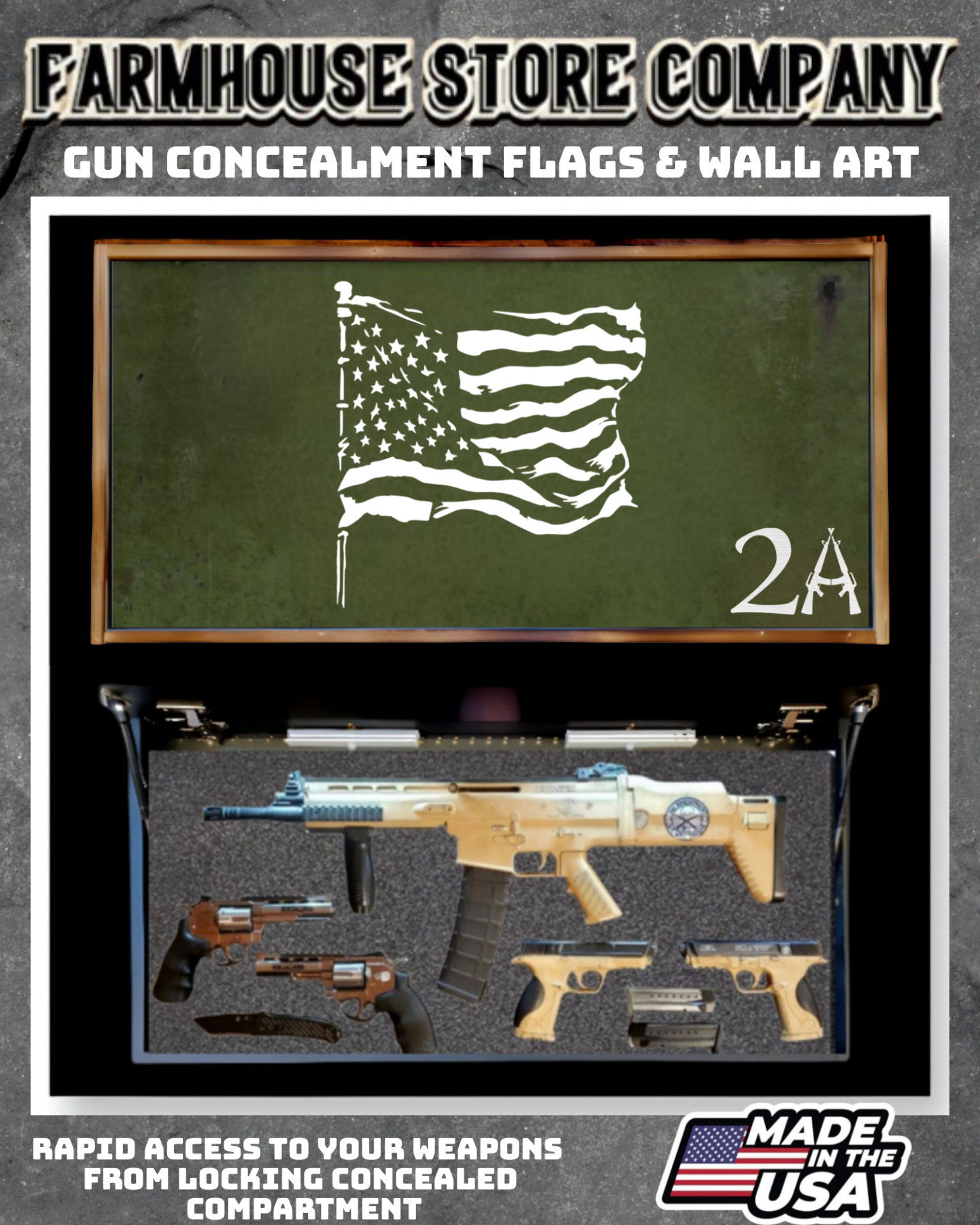Complete secure concealment of your primary home defense weapons behind an amazing piece of American made Patriotic Decor . This premium Concealment Flag Wall Art keeps your weapons safely out of sight and available within a moment's notice when necessary.