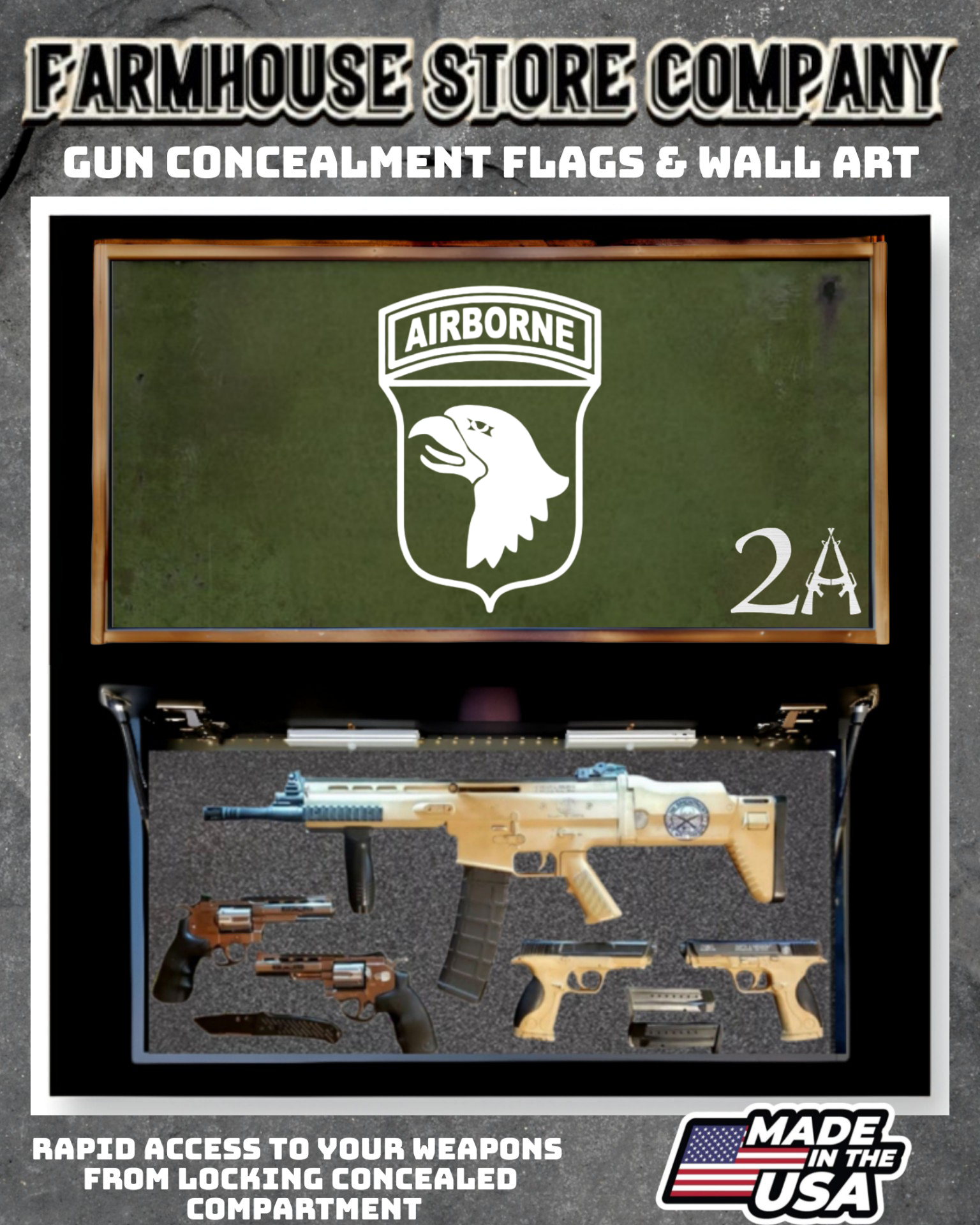 Gun Concealment Flag Deluxe Wall Art BATTLE-WORN OD GREEN 2A 101st Airborne Design