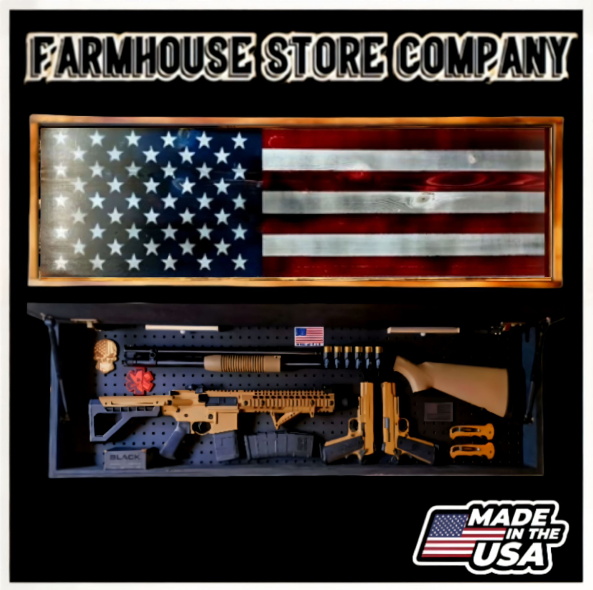 Complete secure concealment of your primary home defense weapons behind an amazing piece of American made Patriotic Decor . This premium Concealment Wall Art keeps your weapons safely out of sight and available within a moment's notice when necessary.