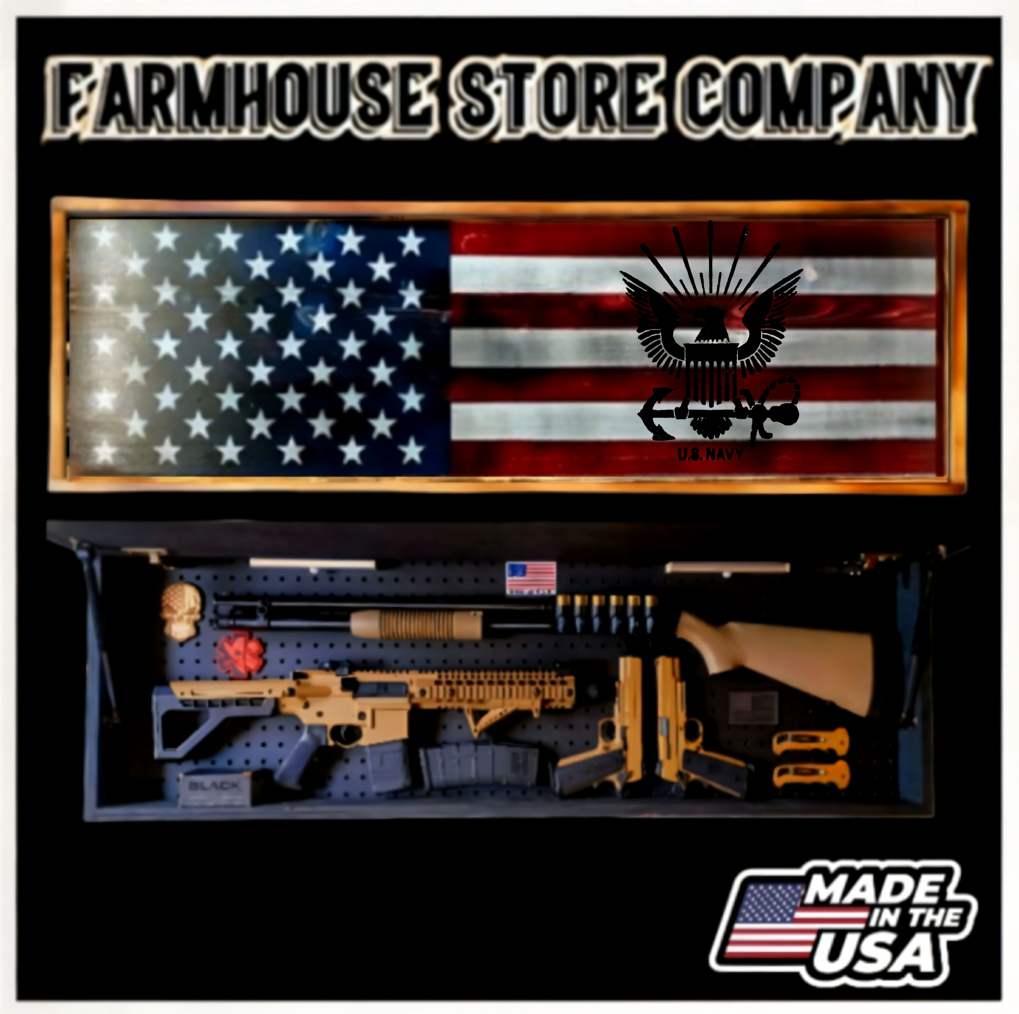 Complete secure concealment of your primary home defense weapons behind an amazing piece of American made Patriotic Decor . This premium Concealment Wall Art keeps your weapons safely out of sight and available within a moment's notice when necessary.