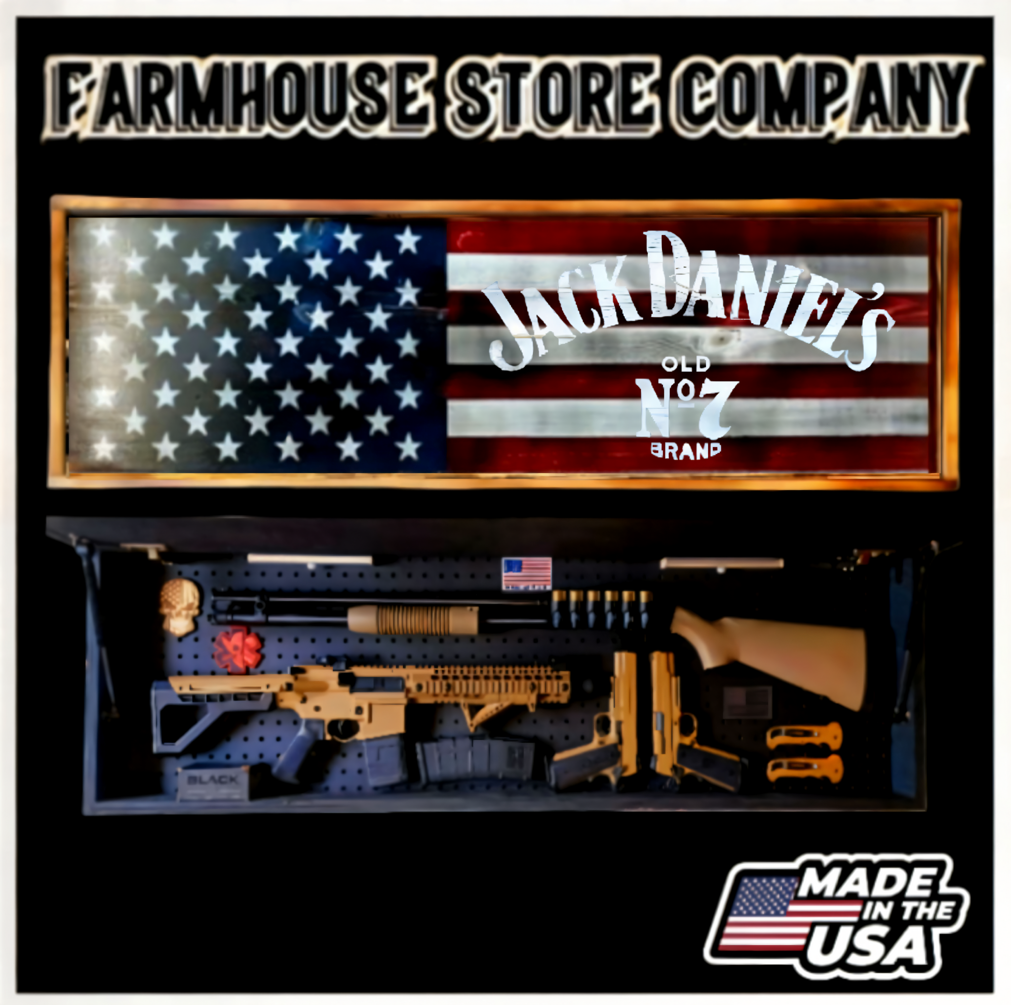 Half American Flag & Jack Daniel's Long Rifle Gun Concealment Flag Wall Art