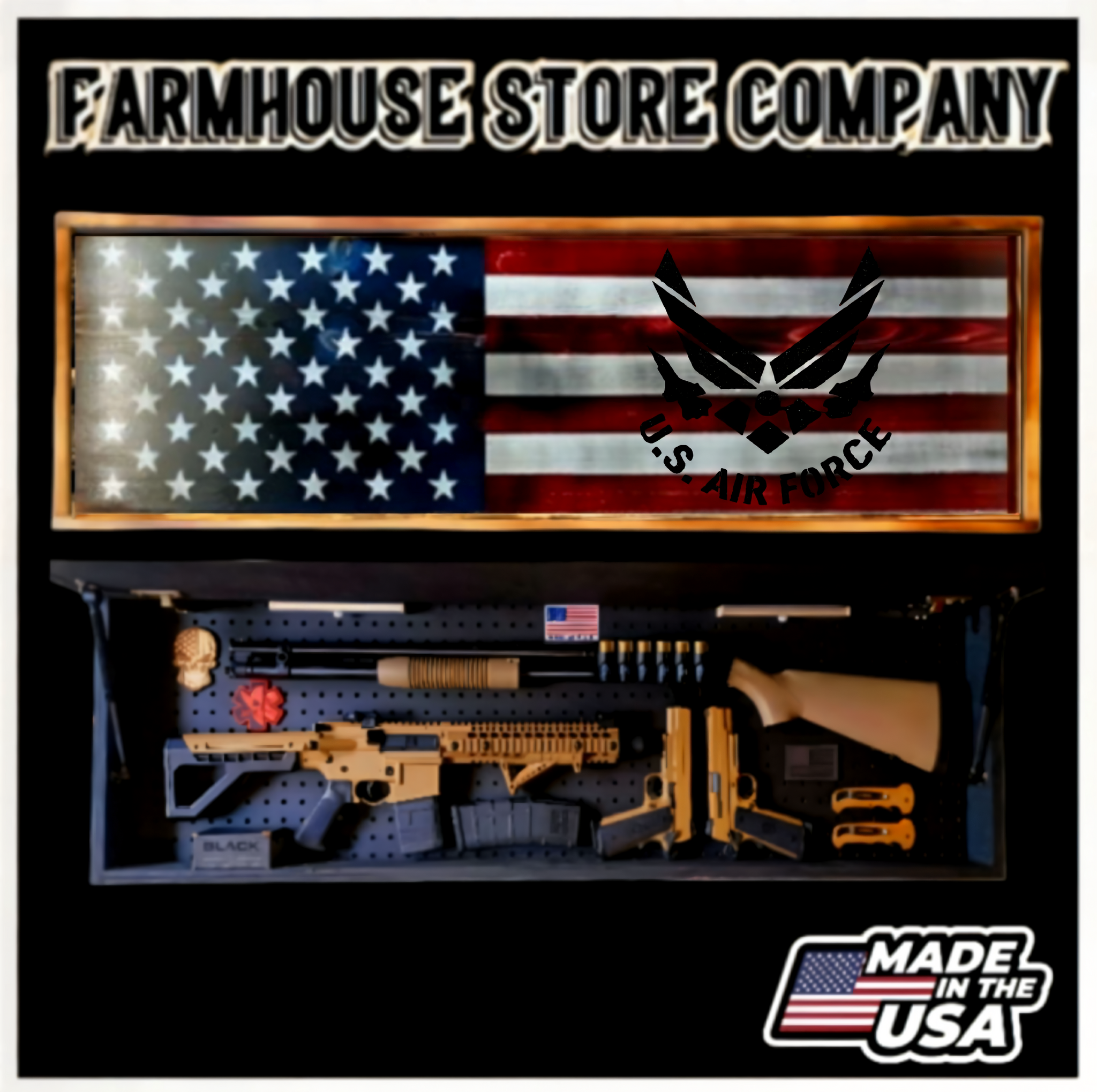 Complete secure concealment of your primary home defense weapons behind an amazing piece of American made Patriotic Decor . This premium Concealment Wall Art keeps your weapons safely out of sight and available within a moment's notice when necessary.