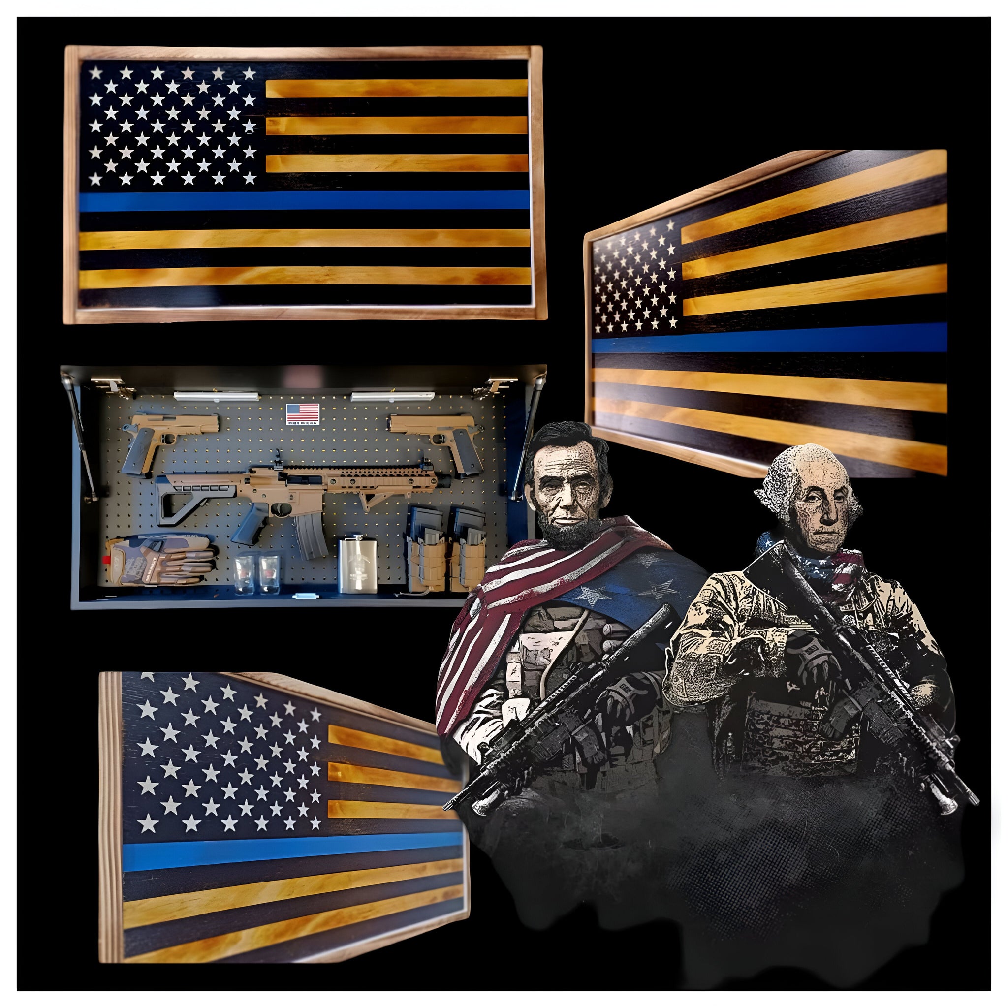 Complete secure concealment of your primary home defense weapons behind an amazing piece of American made Patriotic Decor . This premium Concealment Flag Wall Art keeps your weapons safely out of sight and available within a moment's notice when necessary.