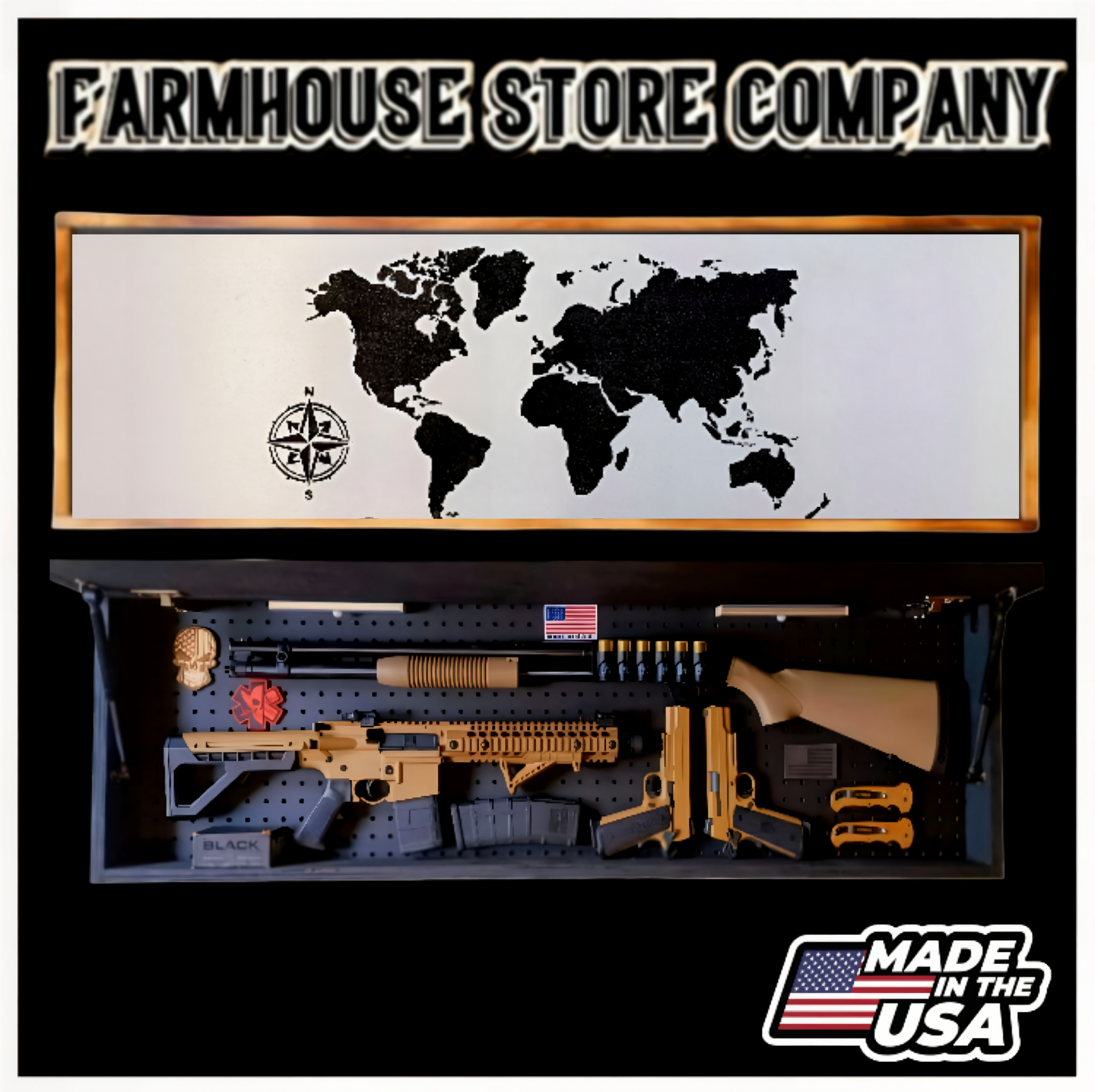Complete secure concealment of your primary home defense weapons behind an amazing piece of American made Patriotic Decor . This premium Concealment Wall Art keeps your weapons safely out of sight and available within a moment's notice when necessary.