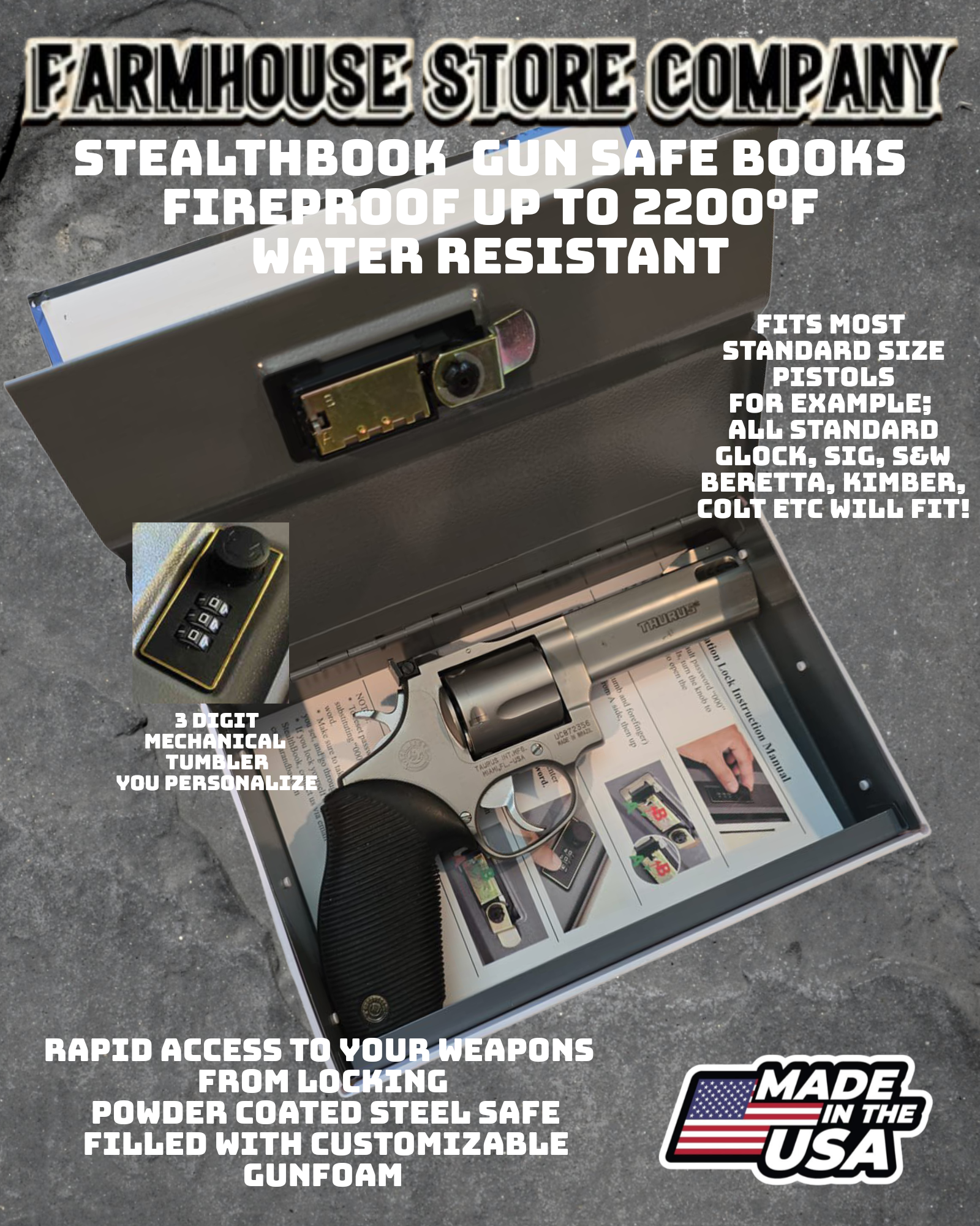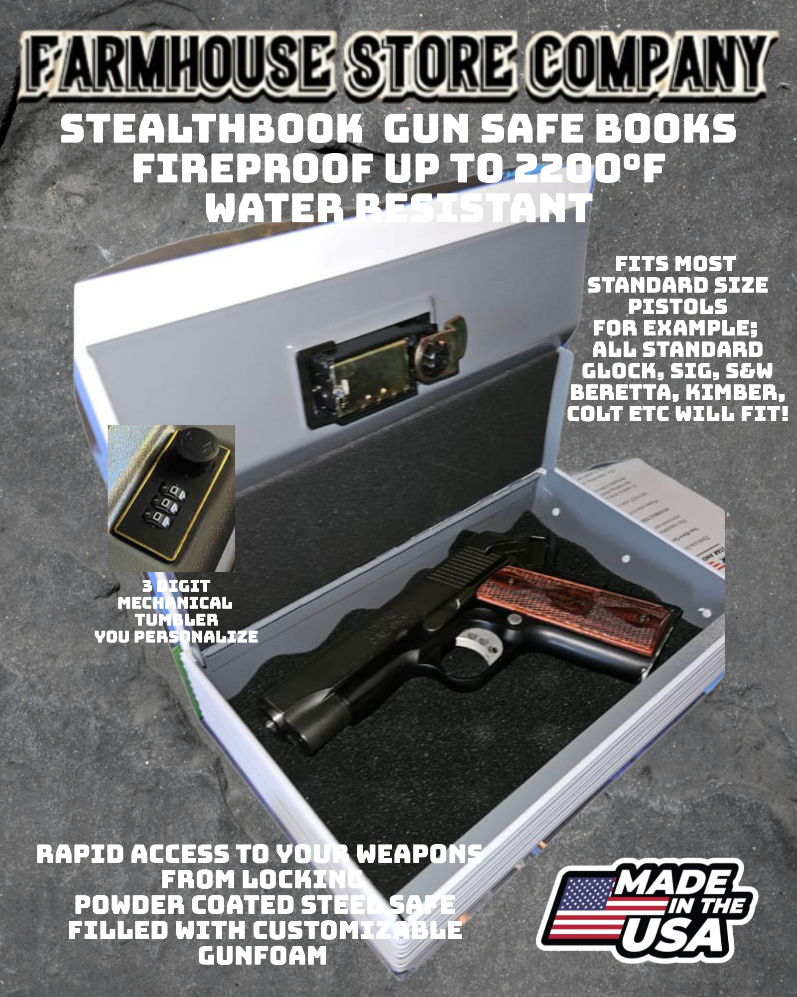 Our Completely Concealed steel Locking Gun Concealment book safe with gun foam insert is Perfect for any room and any budget.